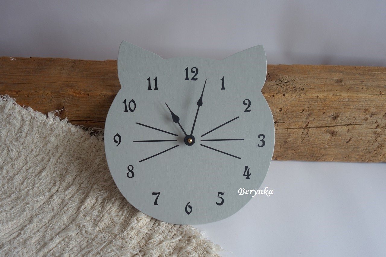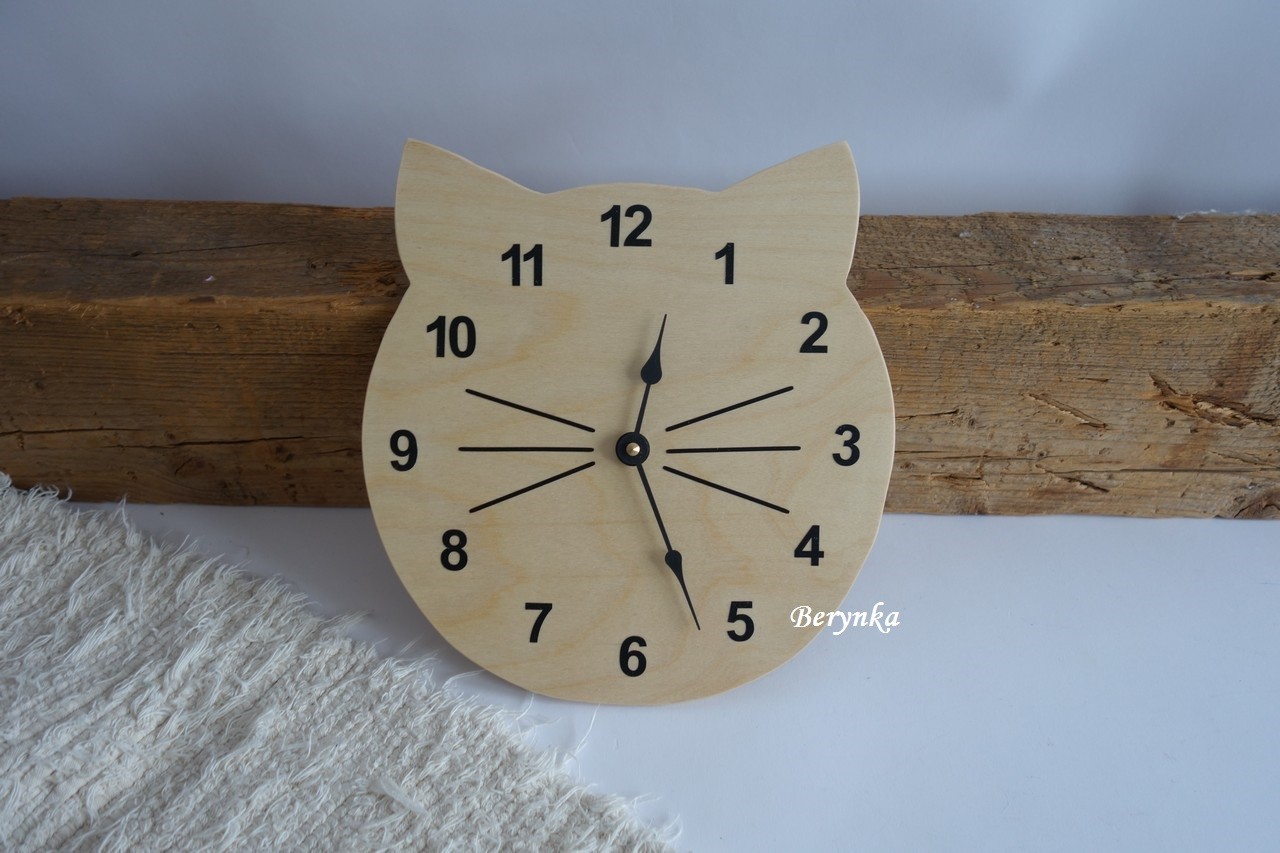 Dřevěné hodiny kočička