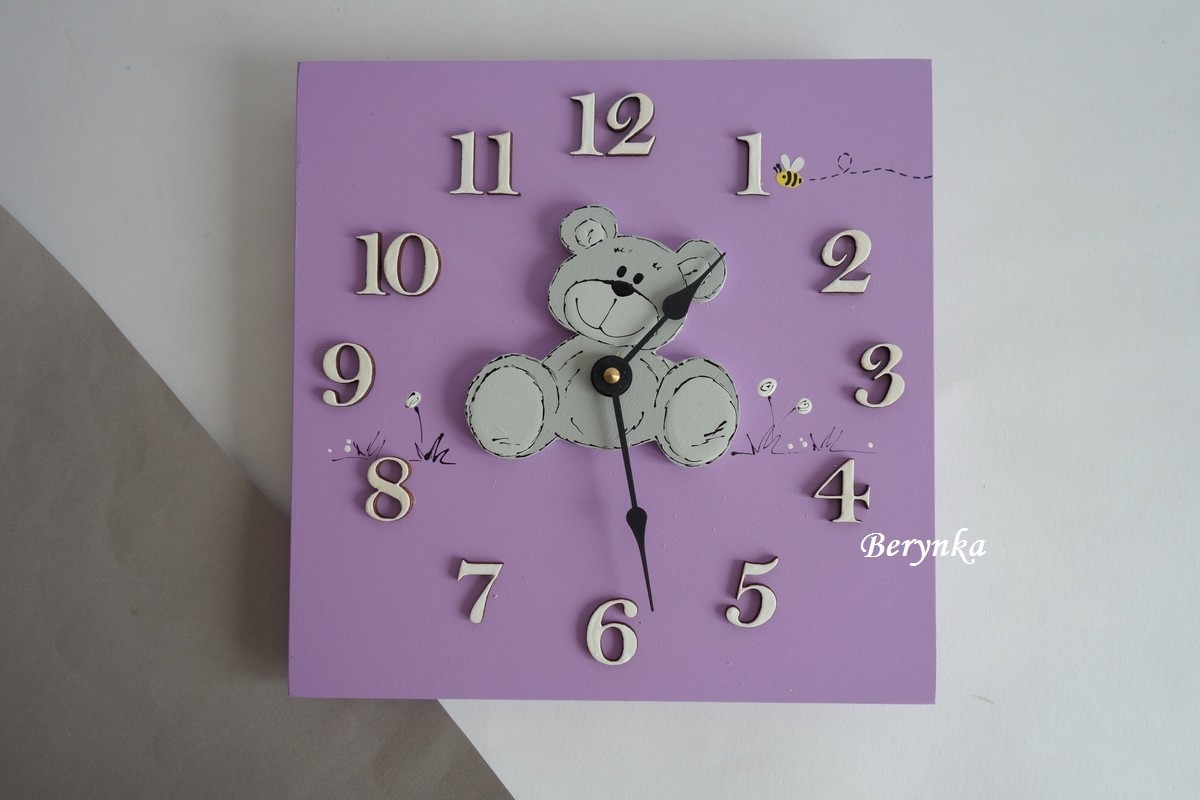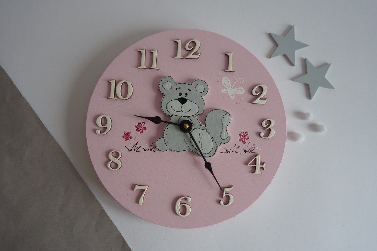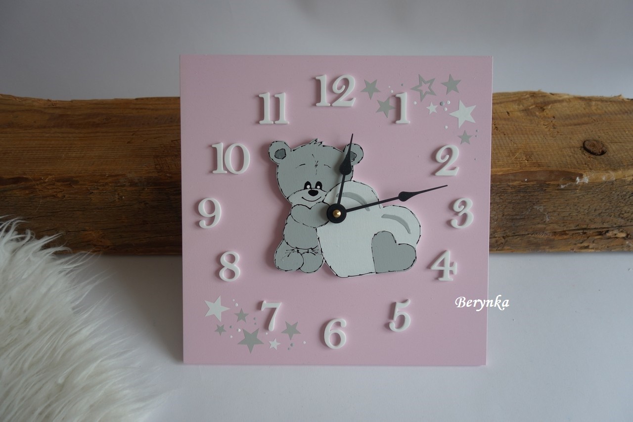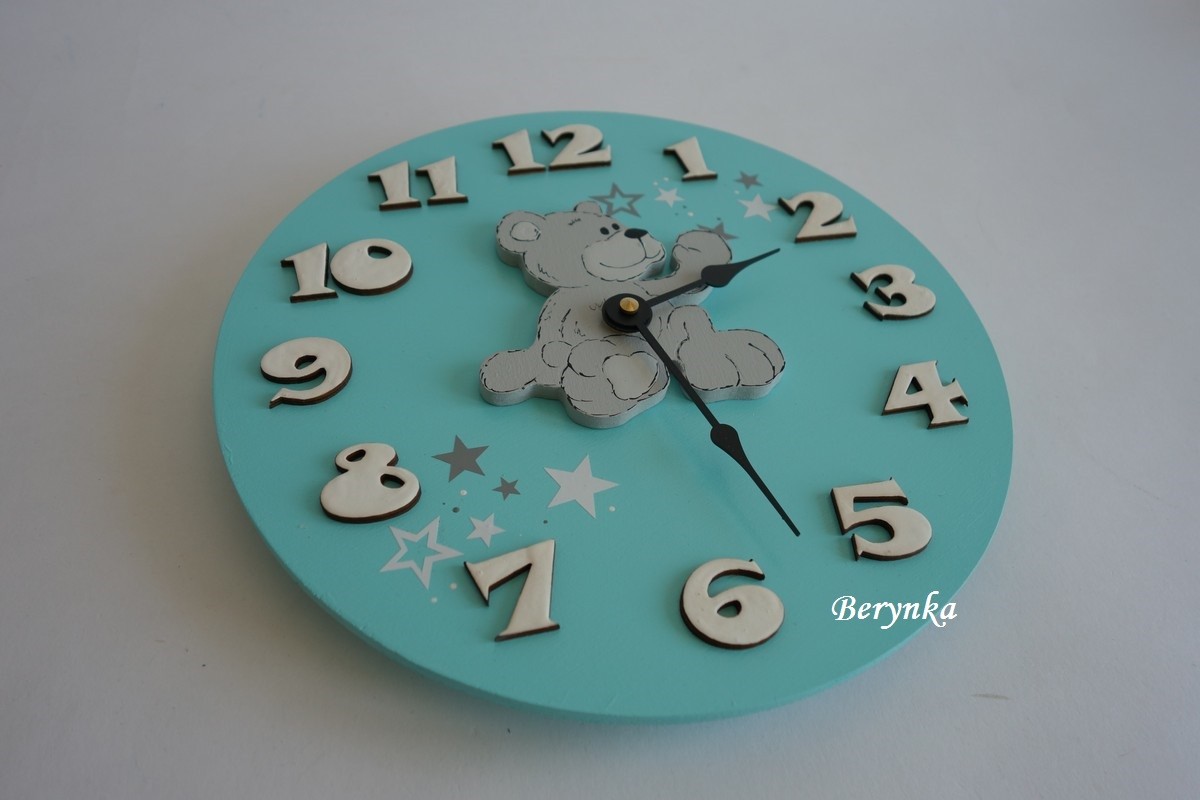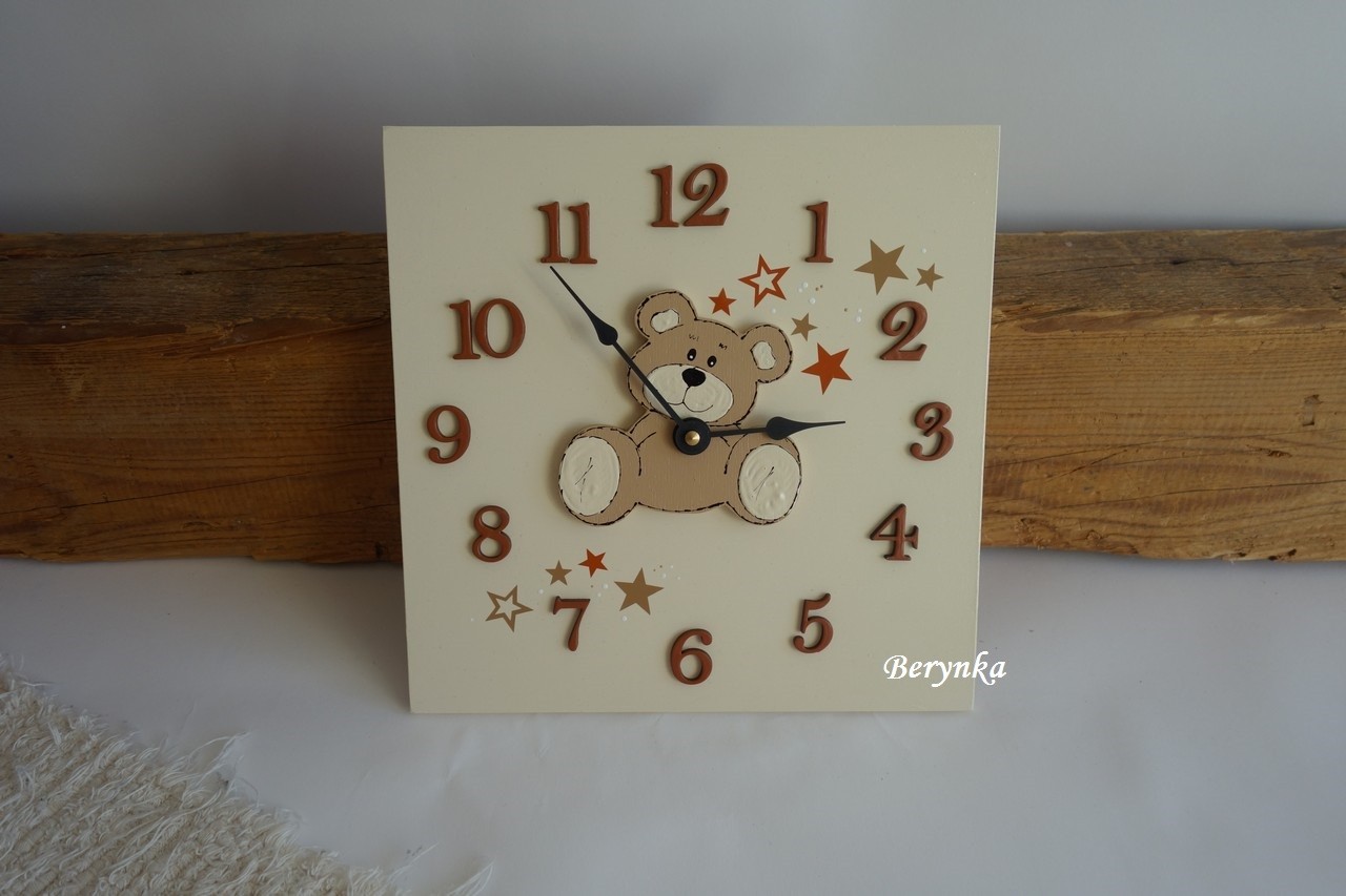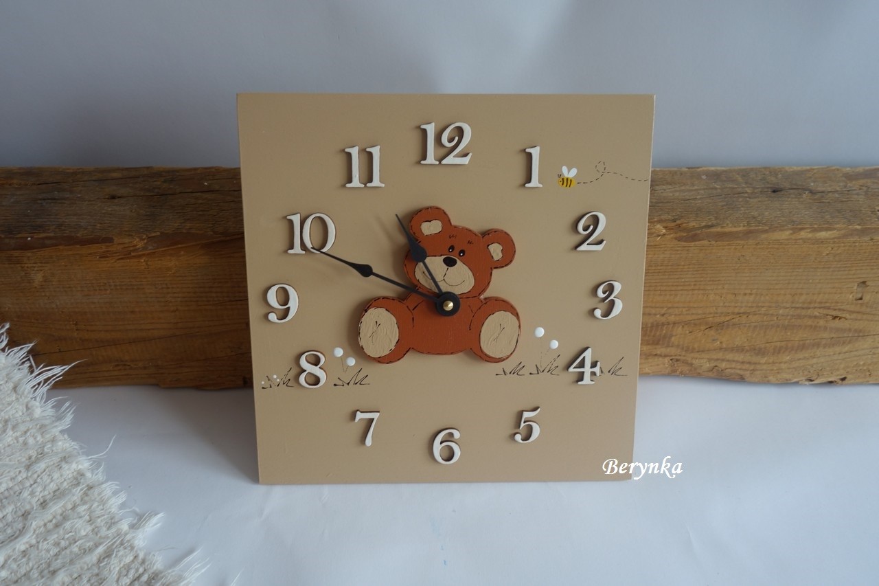 Dřevěné hodiny s medvídkem - kulaté/čtvercové