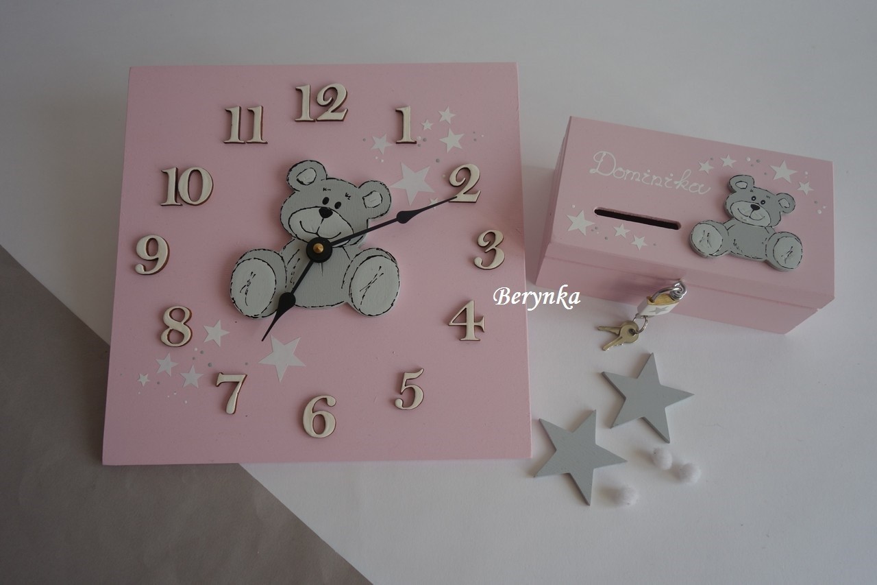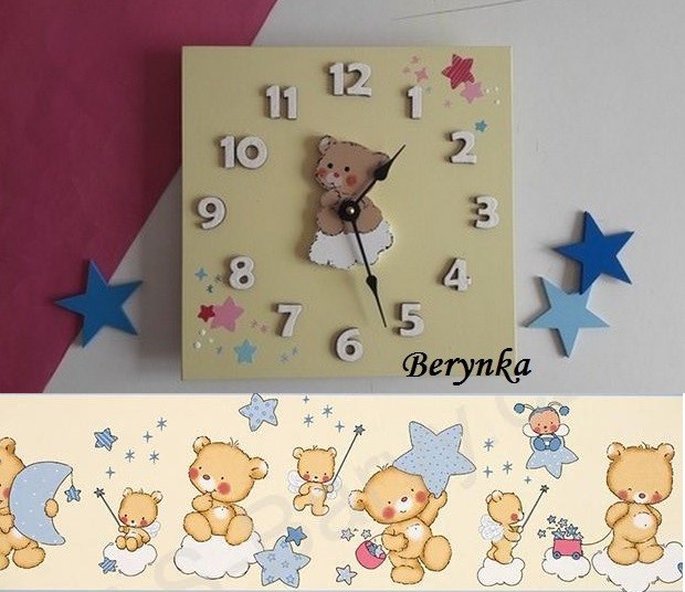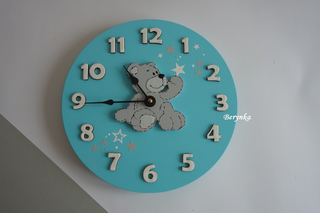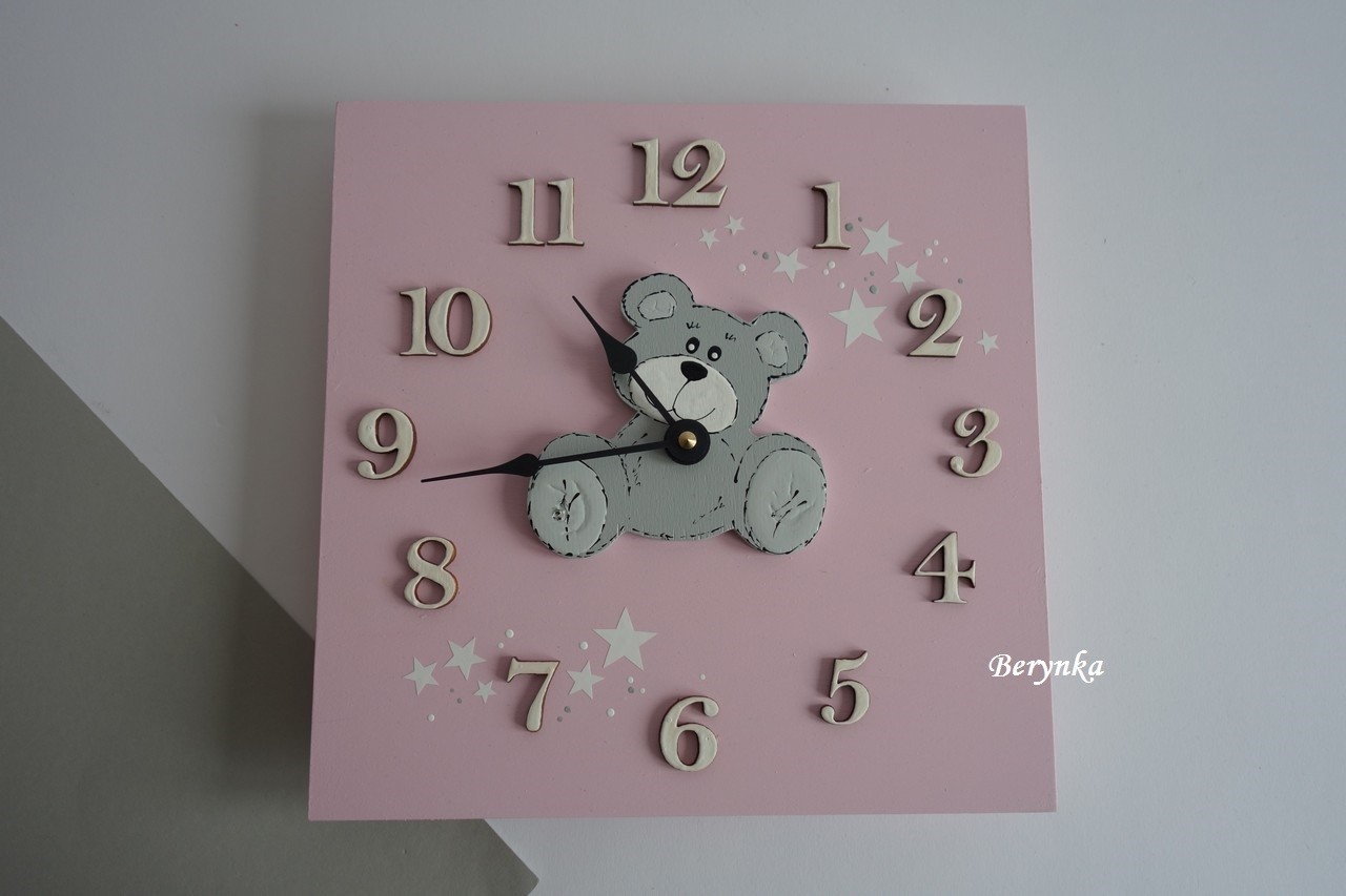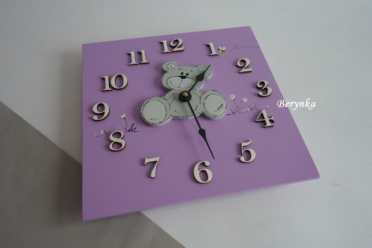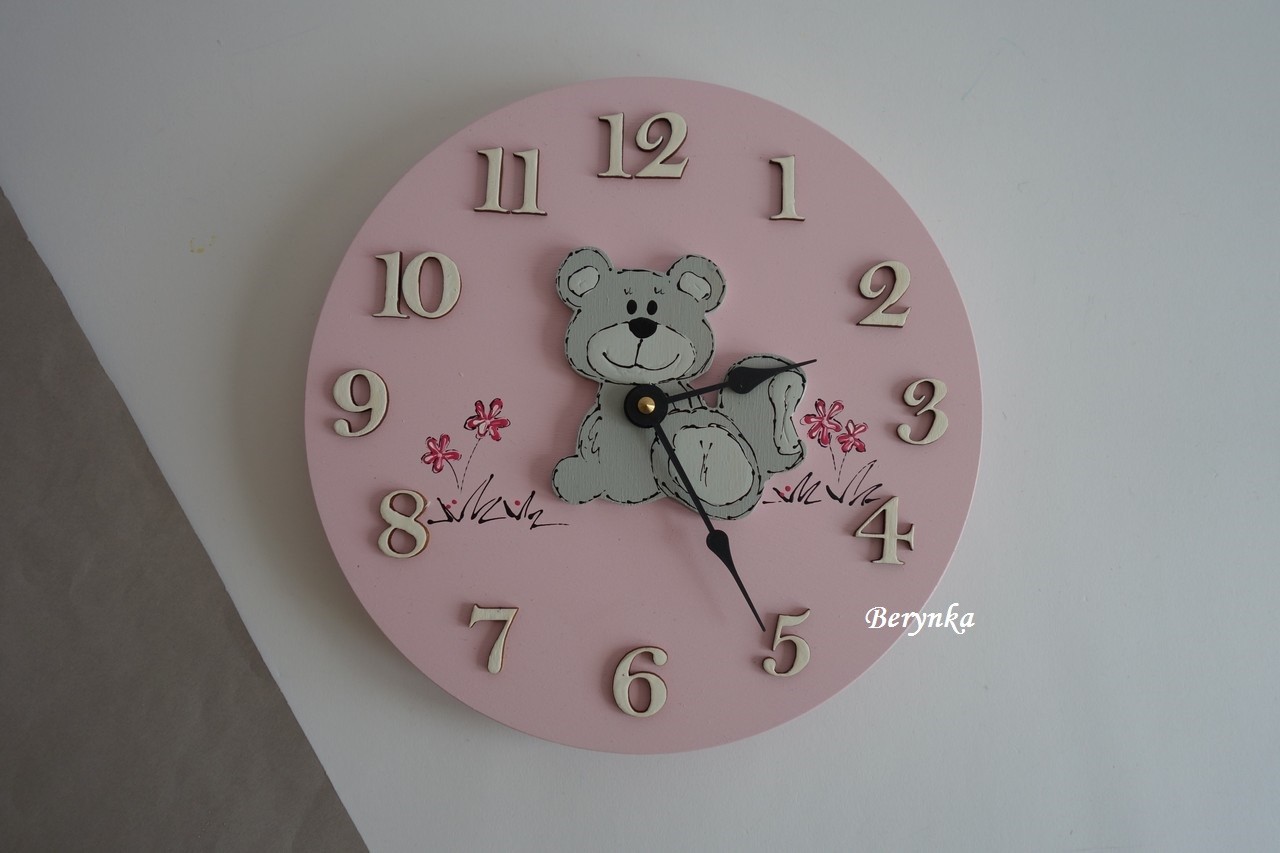 Dřevěné hodiny s medvídkem - kulaté/čtvercové