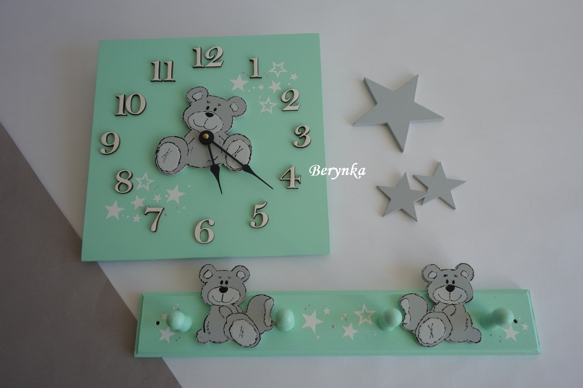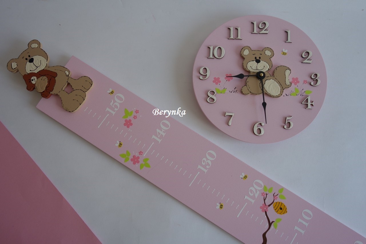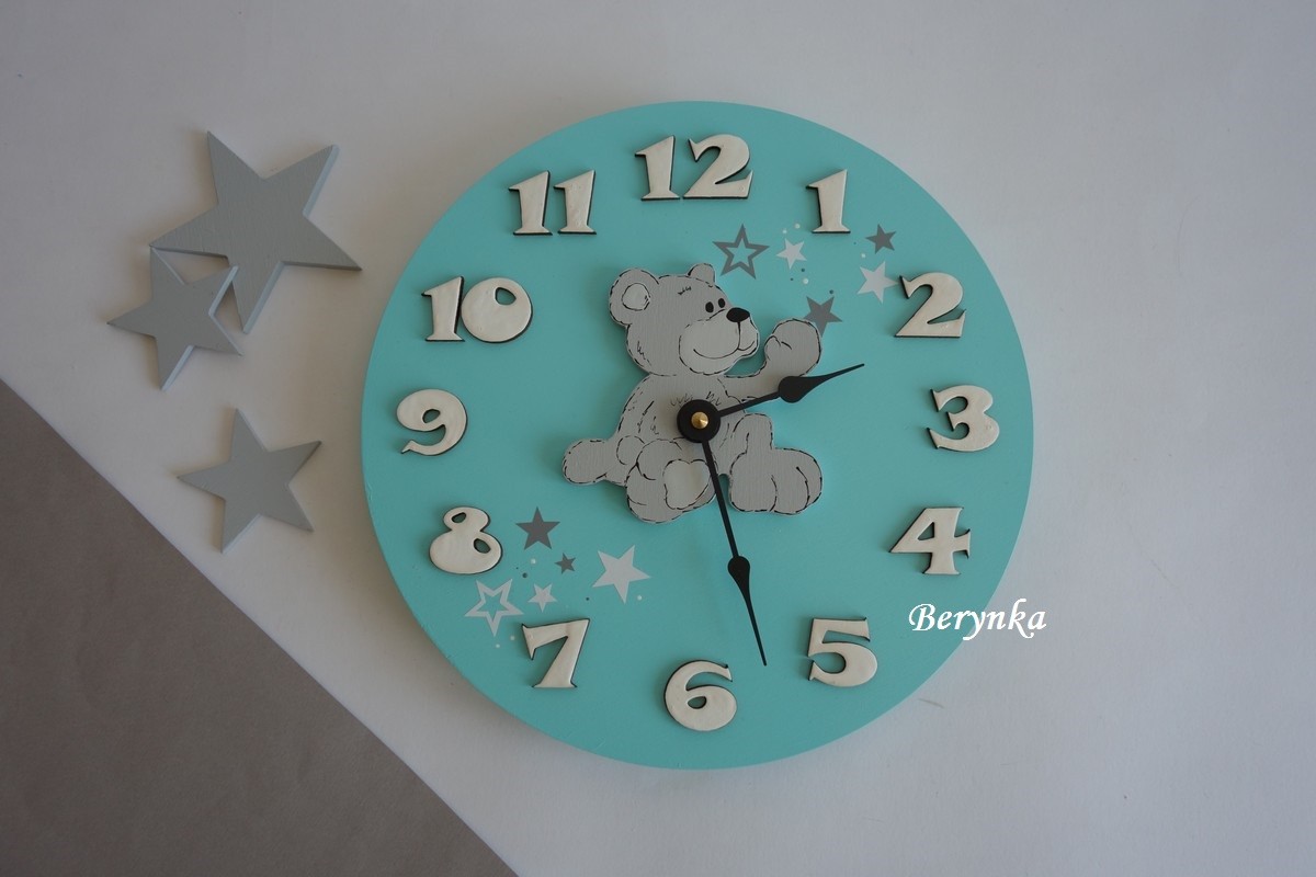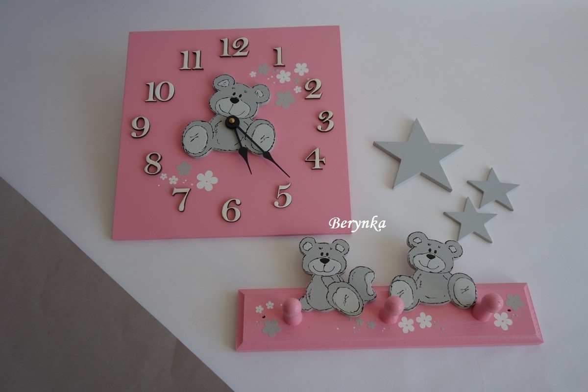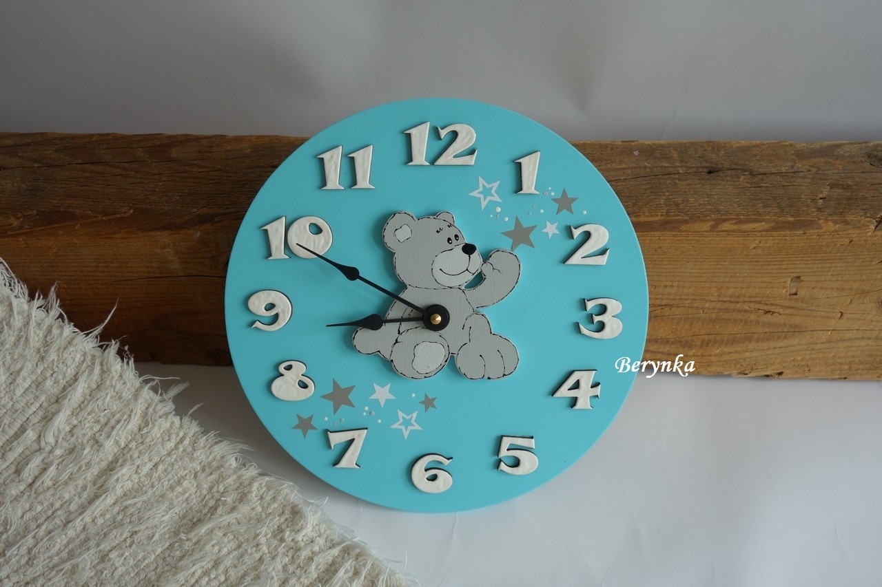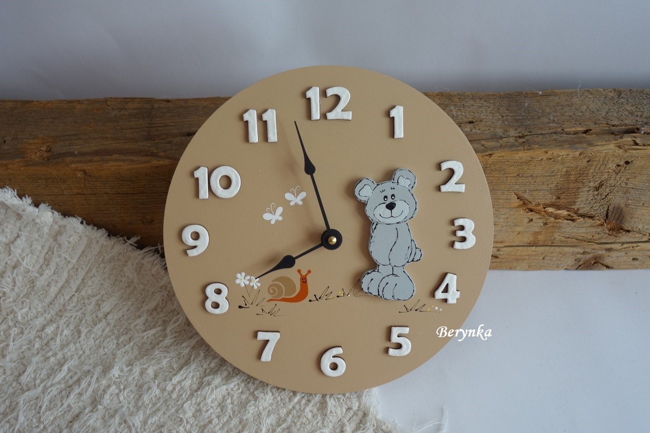 Dřevěné hodiny s medvídkem - kulaté/čtvercové