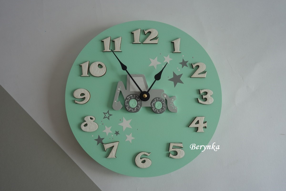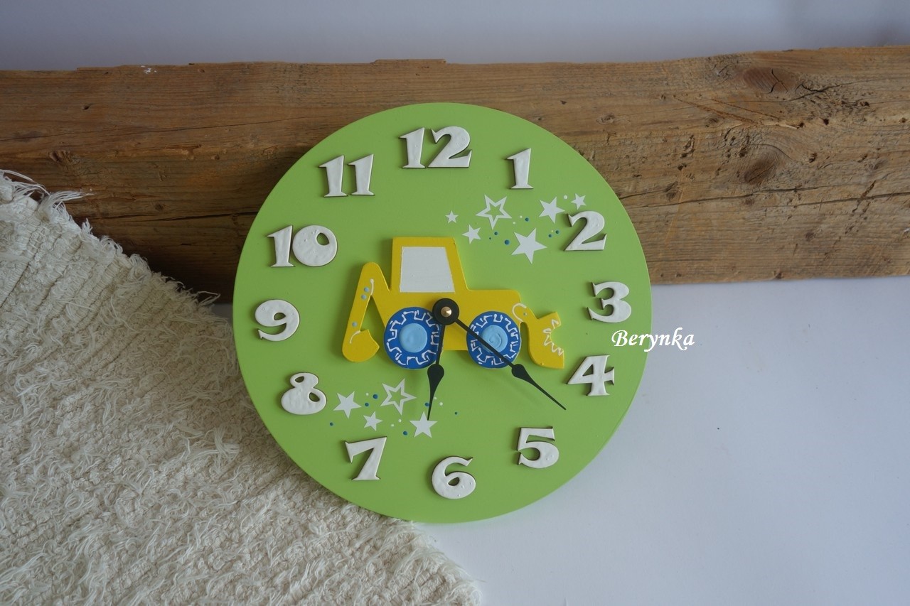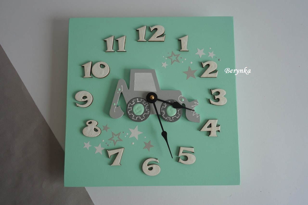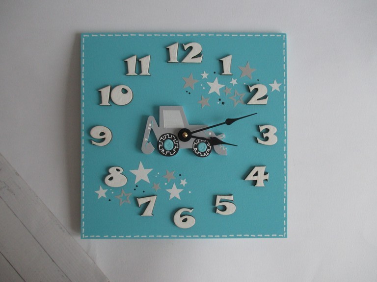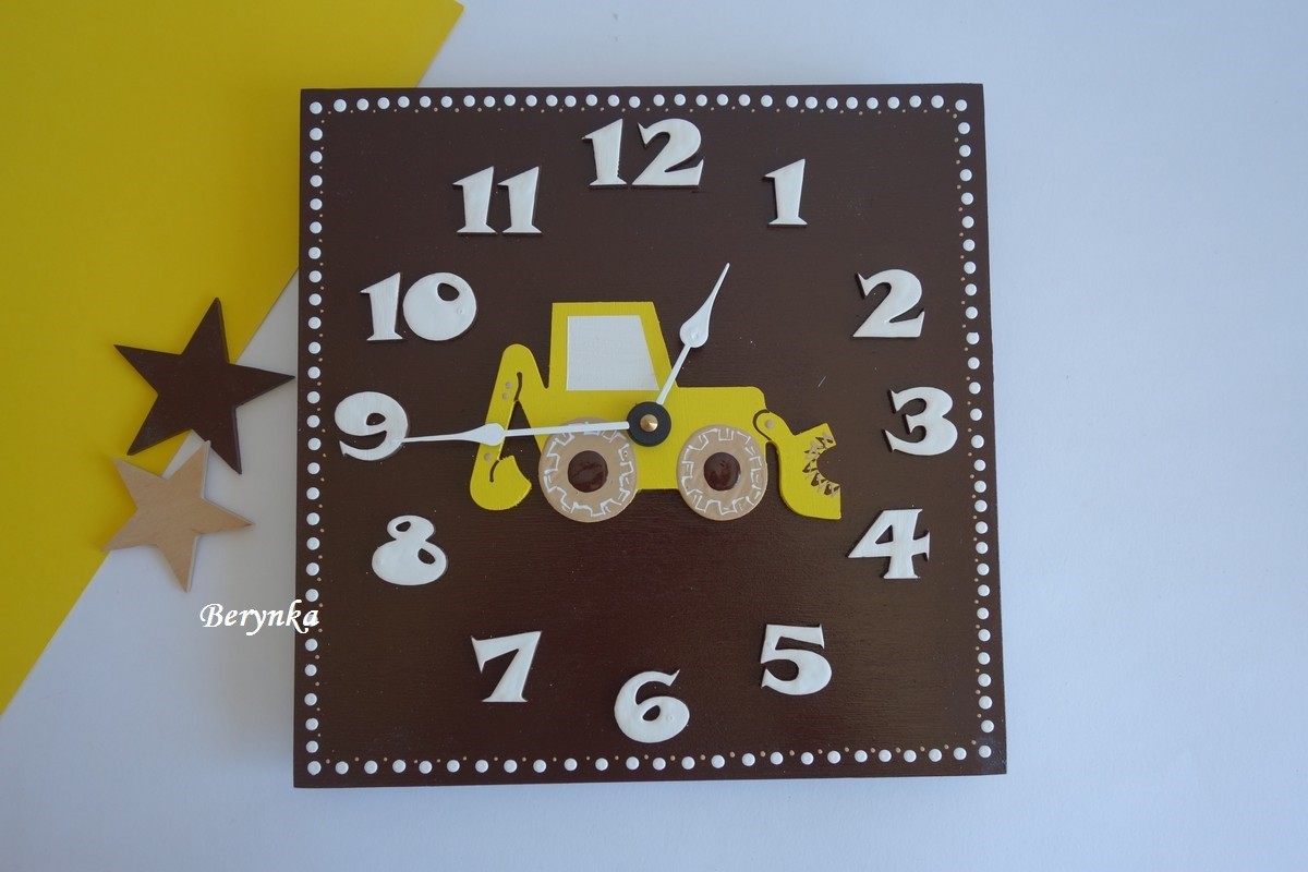- číslice i bagr jsou vyřezané zvlášť a na hodinách nalepené