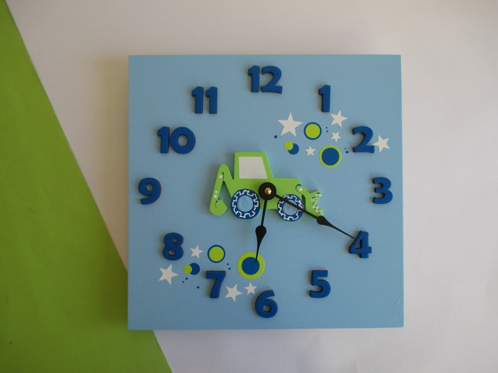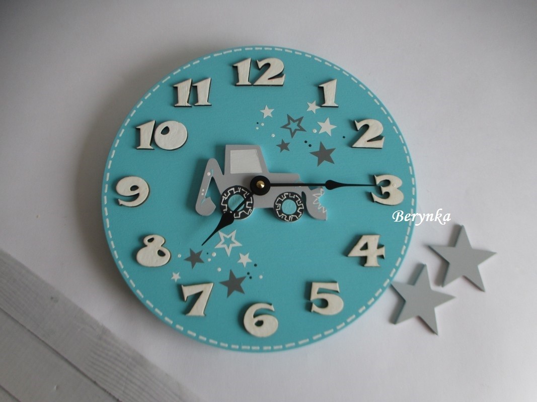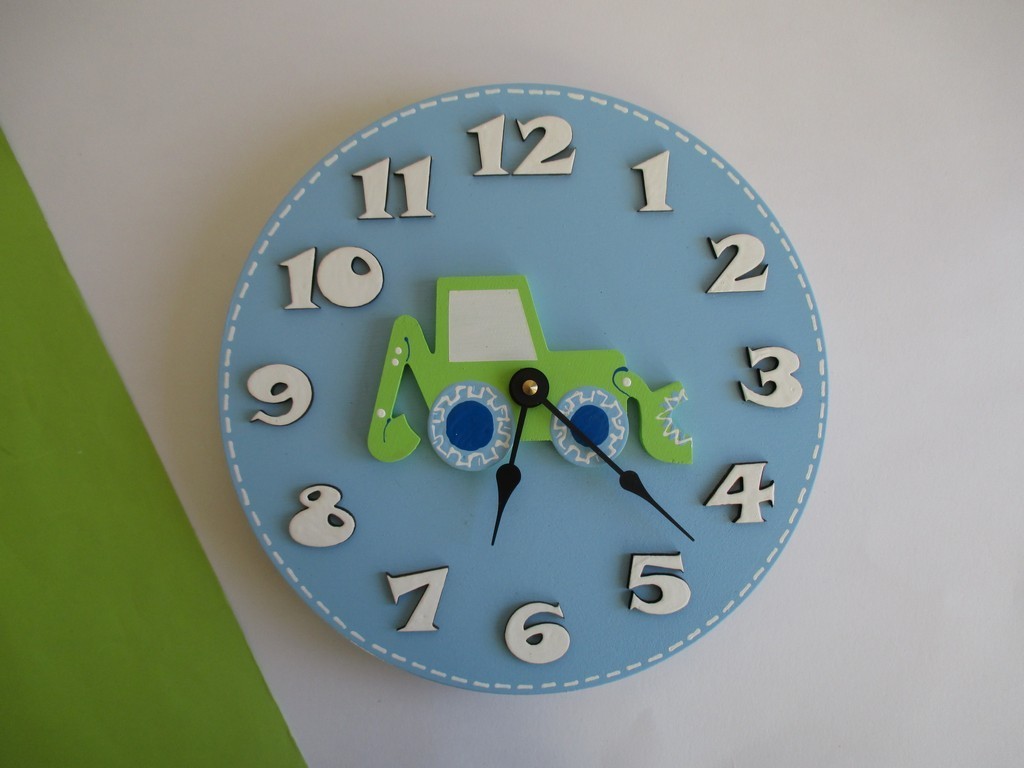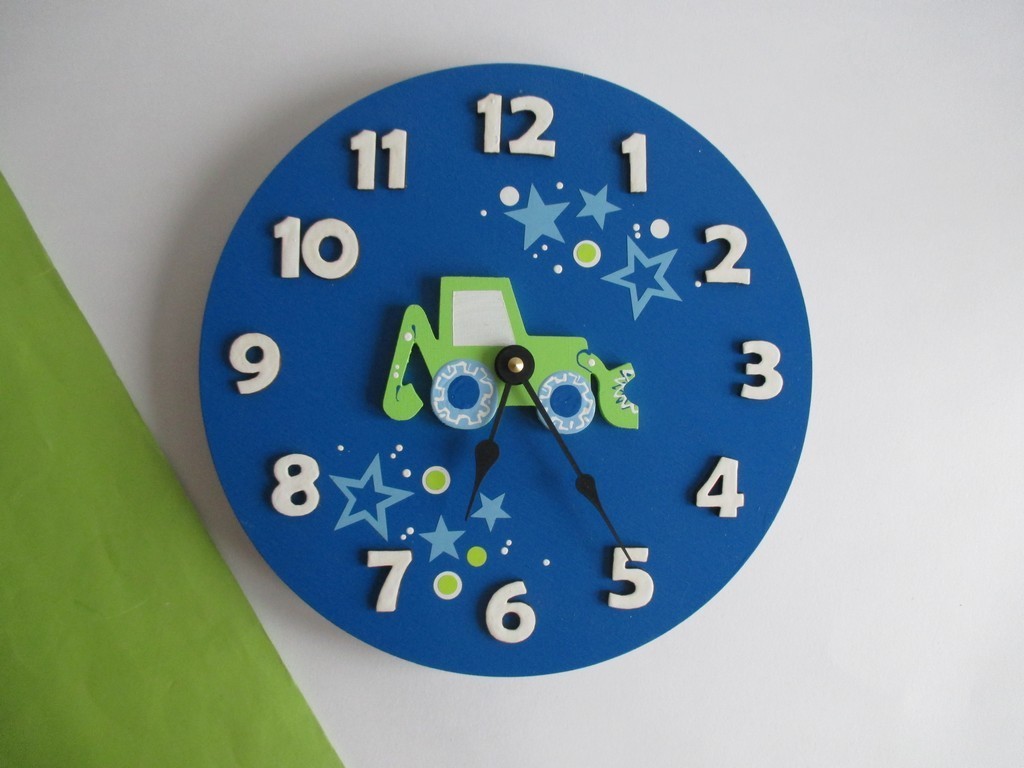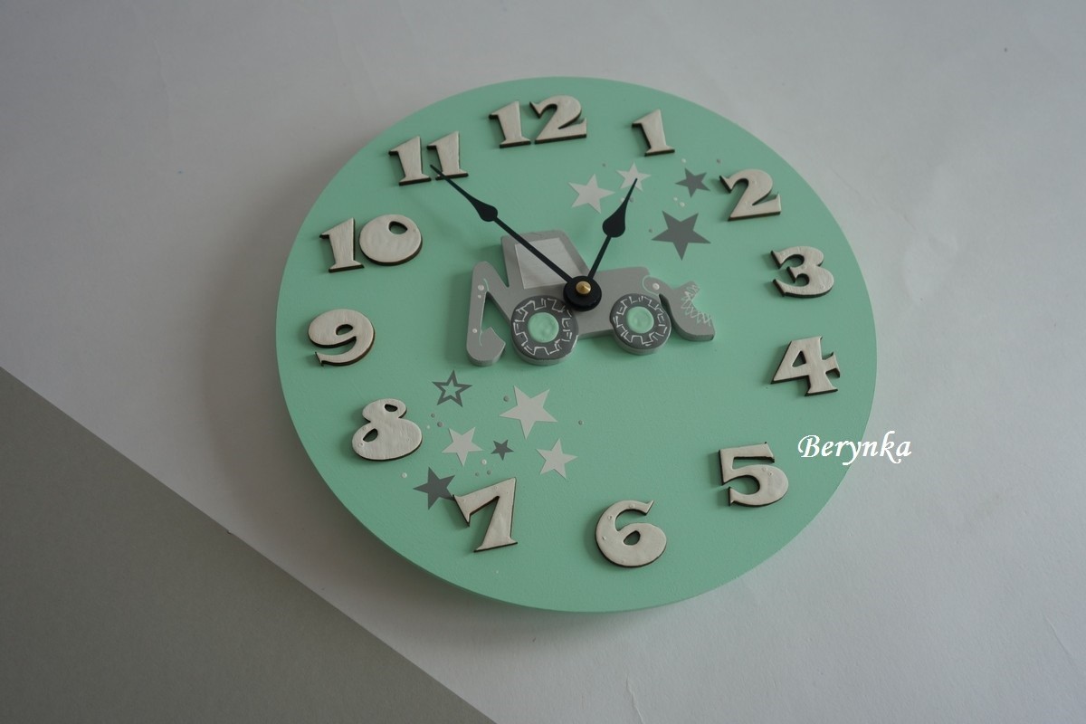 - číslice i bagr jsou vyřezané zvlášť a na hodinách nalepené