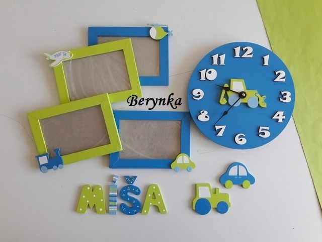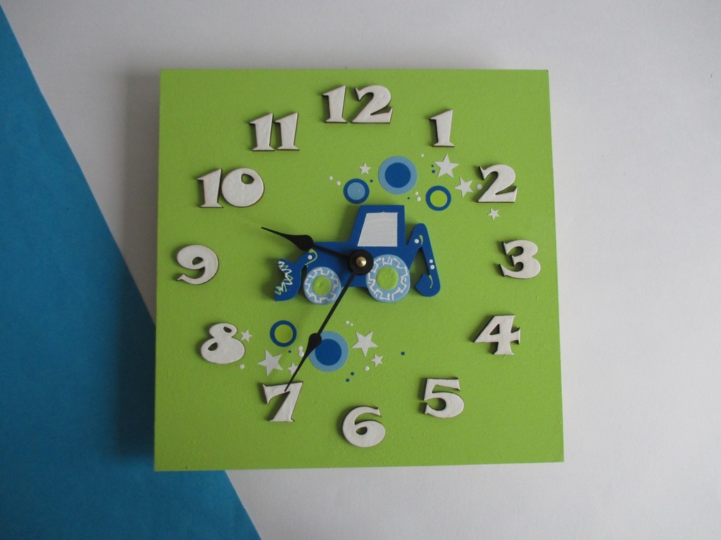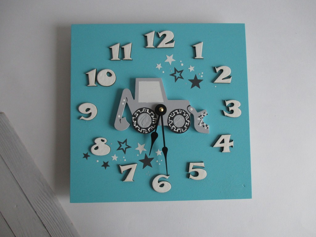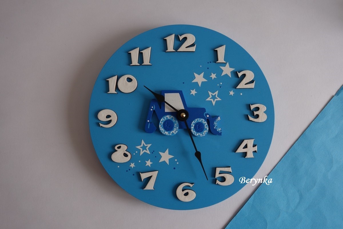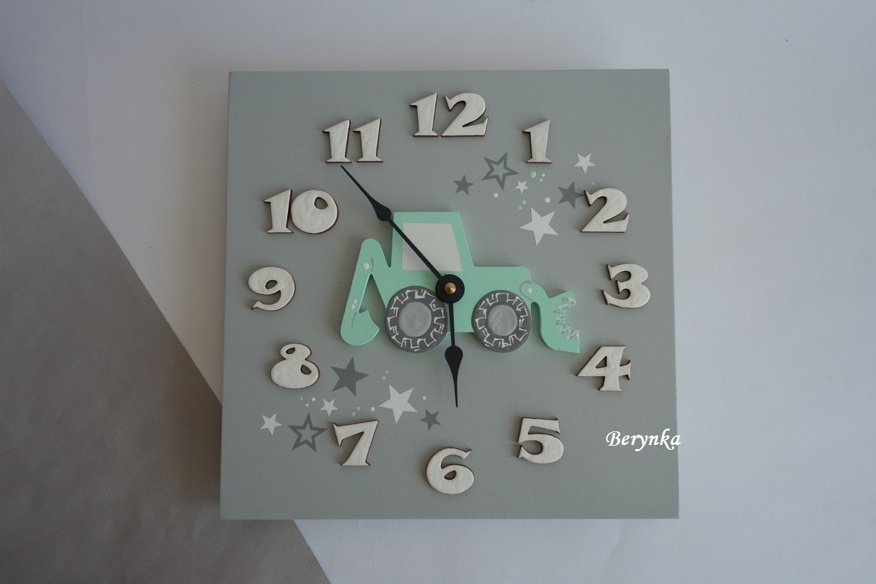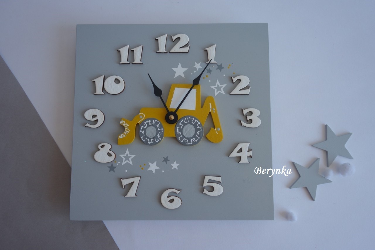 - číslice i bagr jsou vyřezané zvlášť a na hodinách nalepené