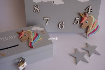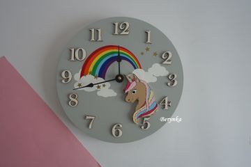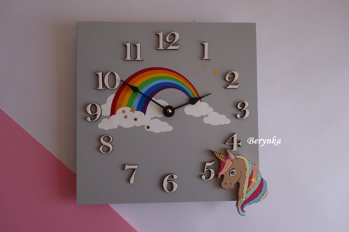 - číslice i jednorožec jsou vyřezané zvlášť a na hodinách nalepené