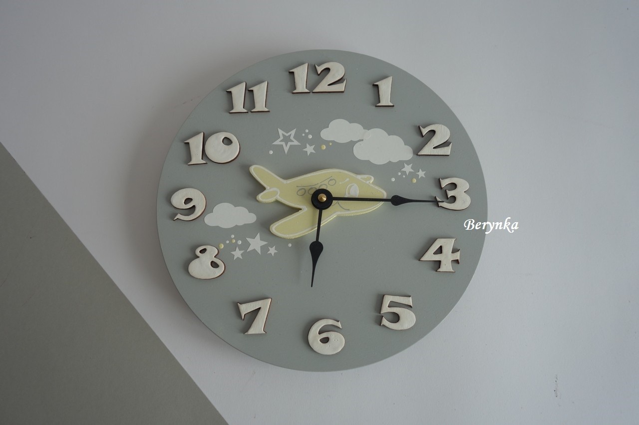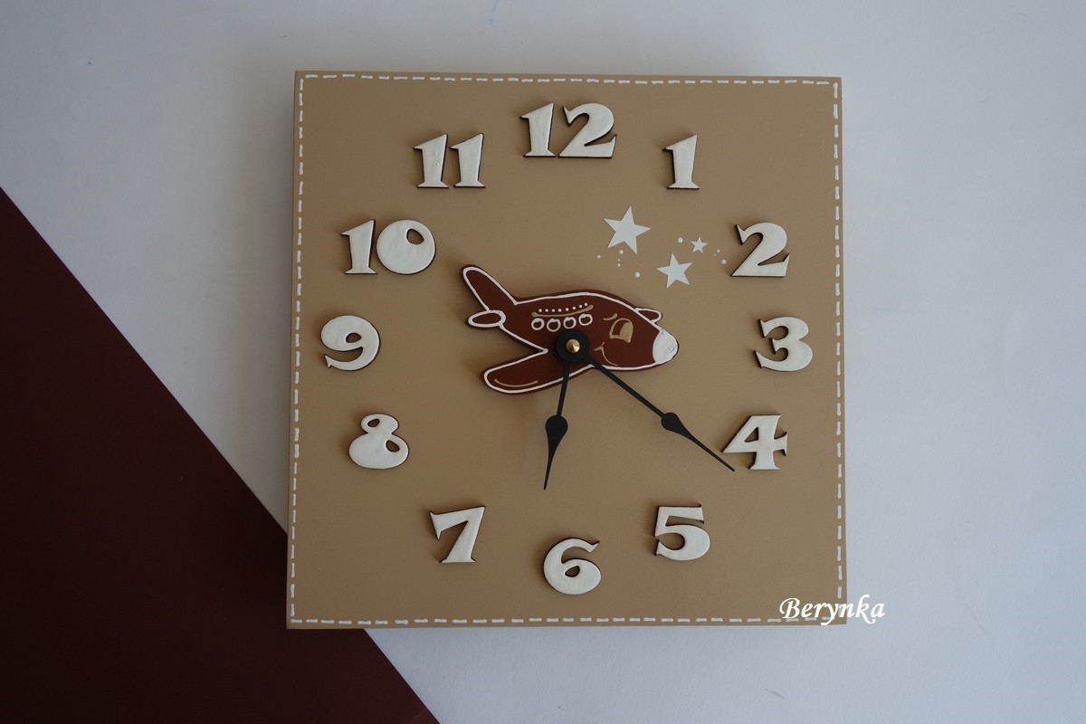 - číslice i letadlo jsou vyřezané zvlášť a na hodinách nalepené