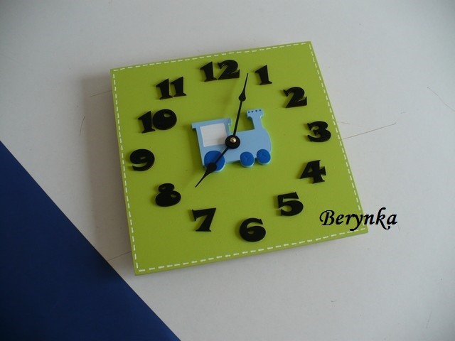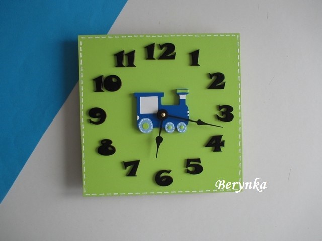 - číslice i mašinka jsou vyřezané zvlášť a na hodinách nalepené