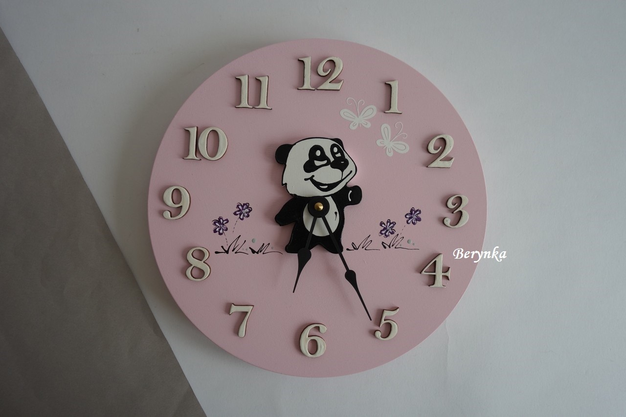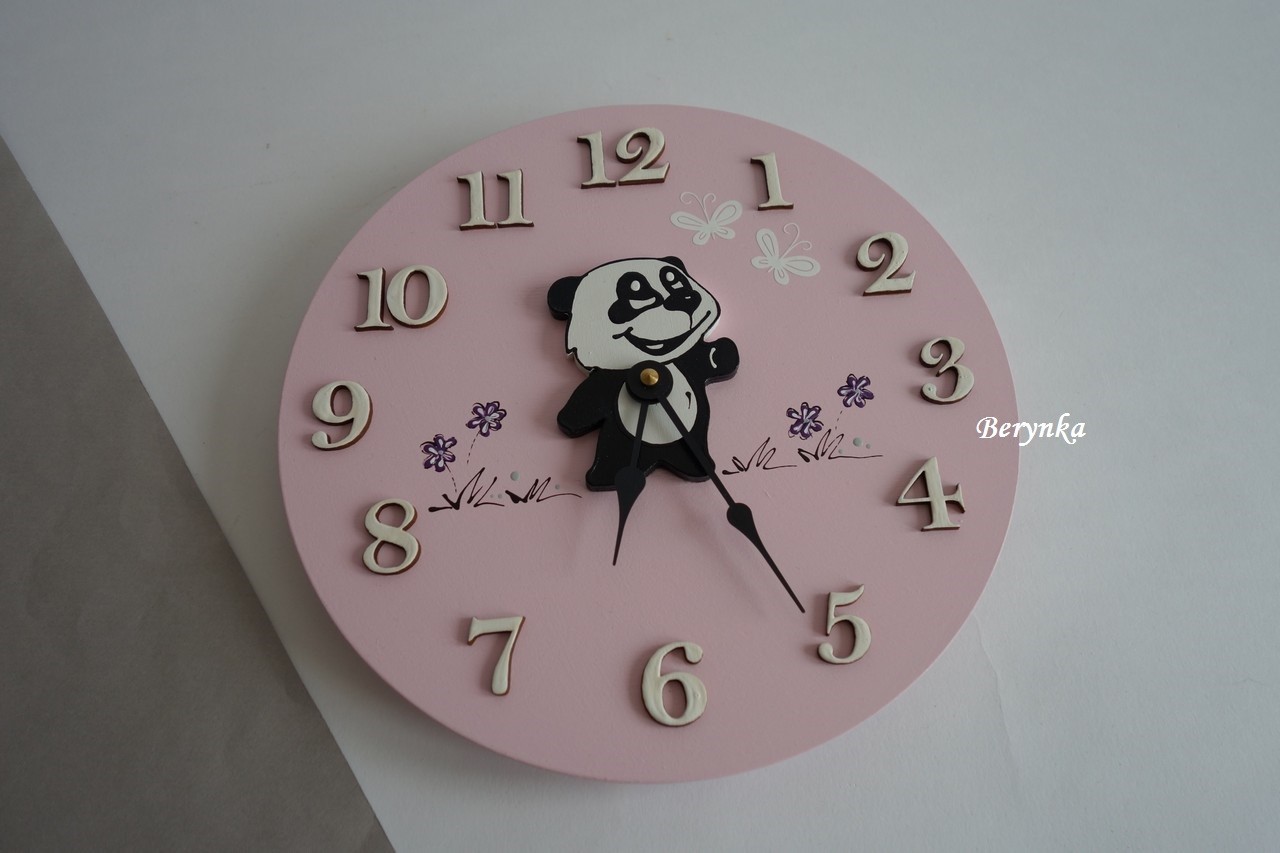 Dřevěné hodiny s pandou a vyřezanými číslicemi