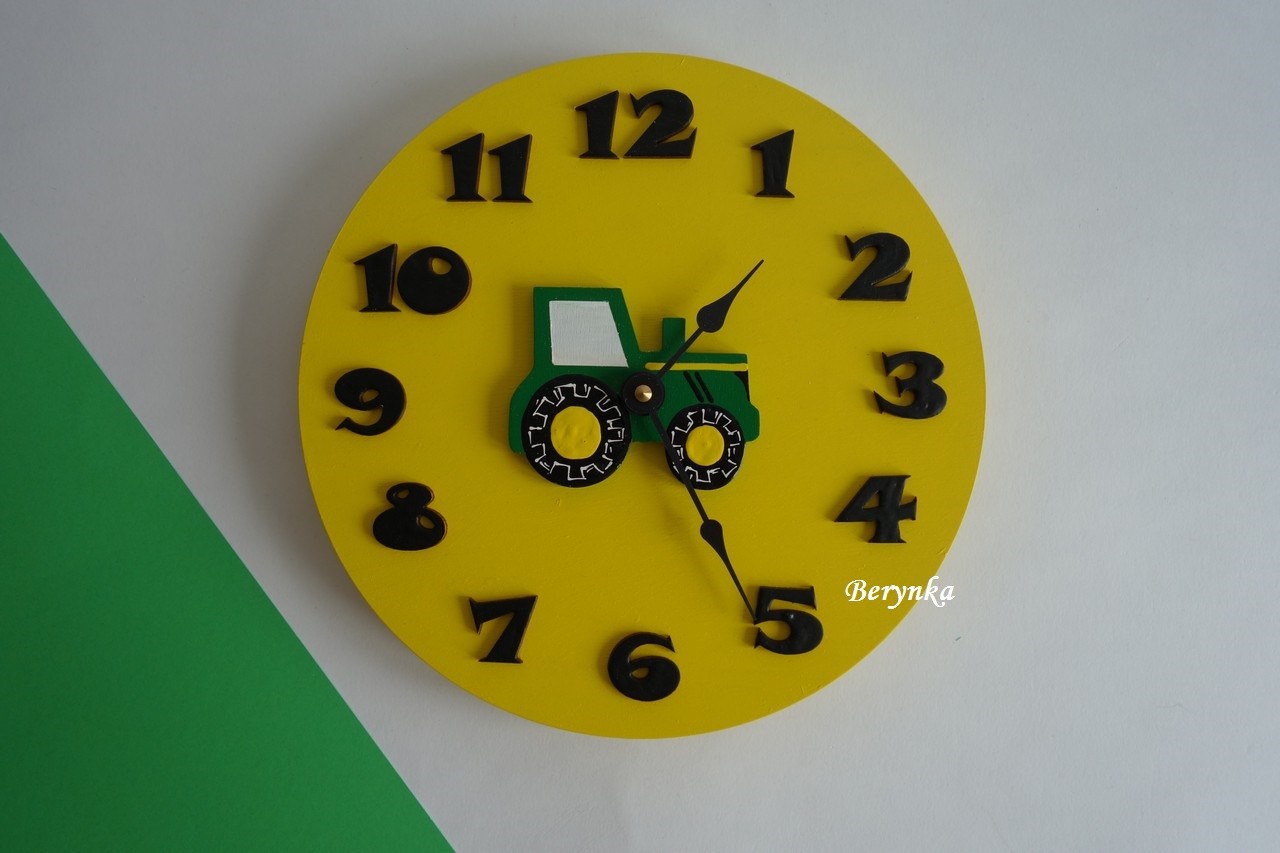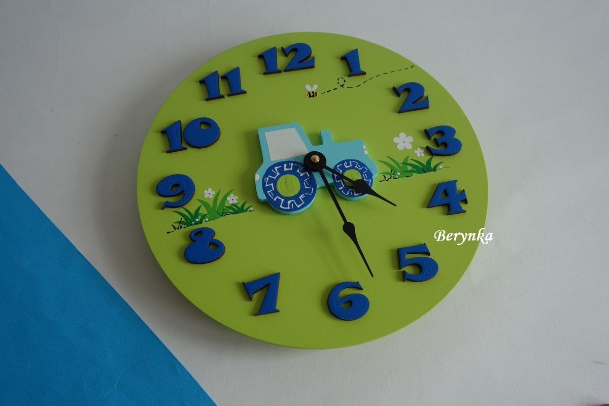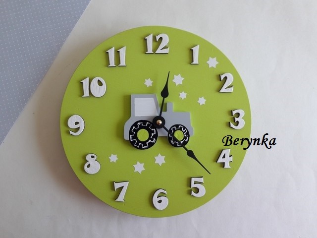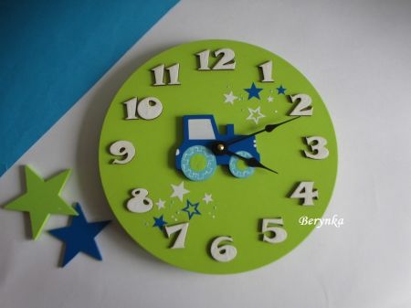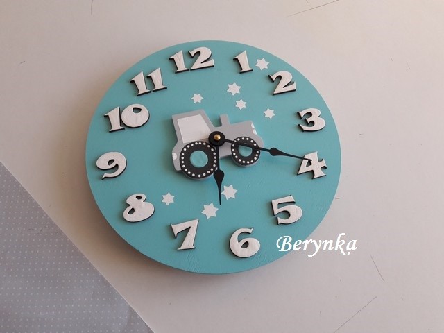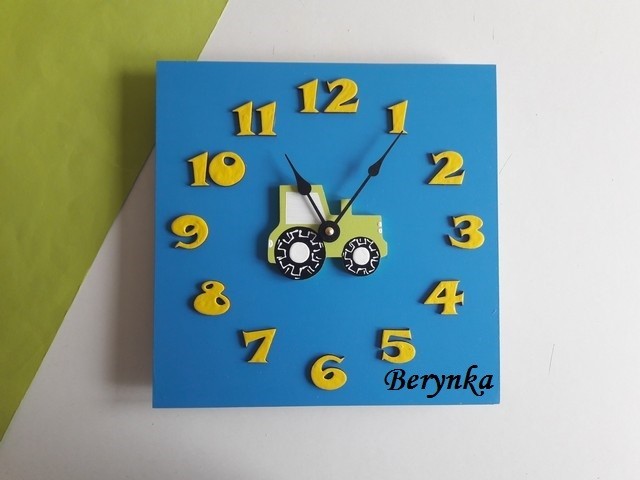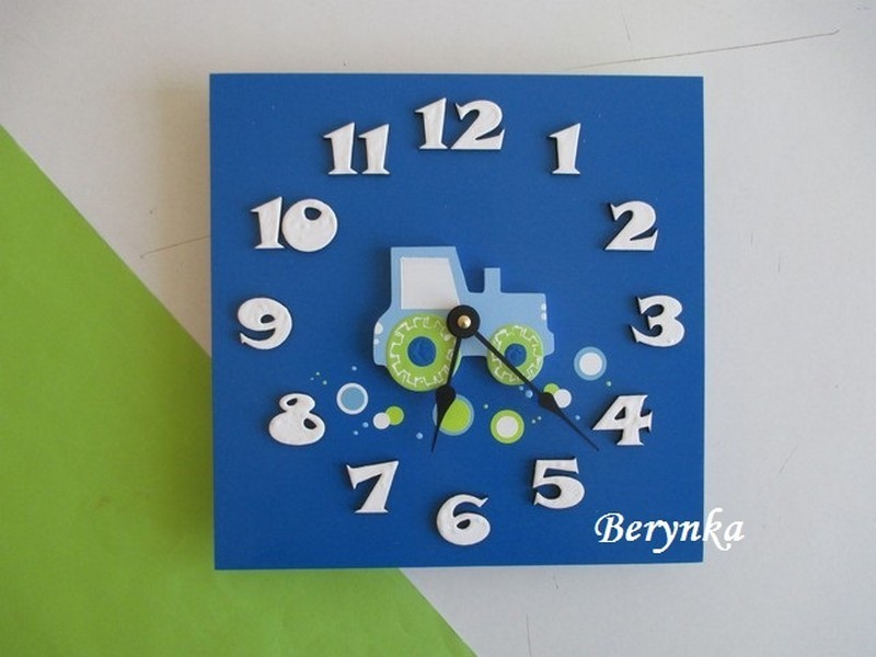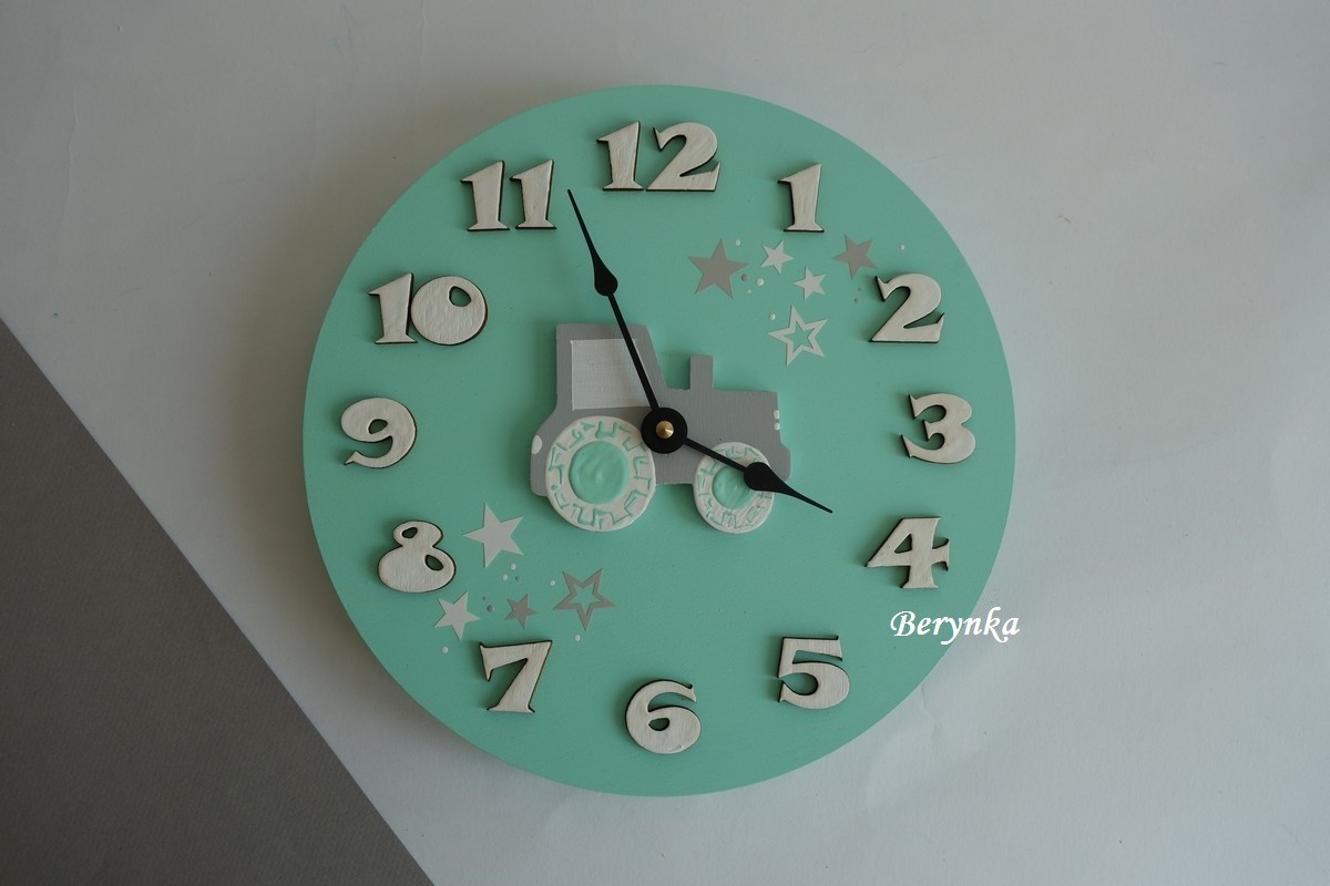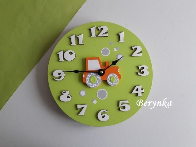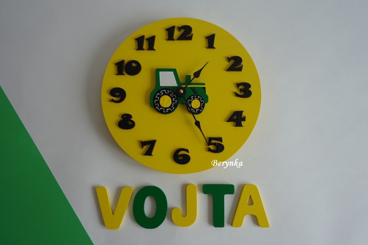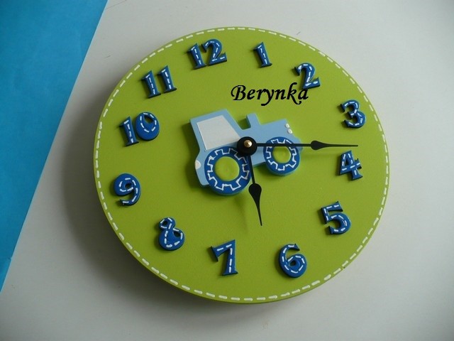 - číslice i traktor jsou vyřezané zvlášť a na hodinách nalepené