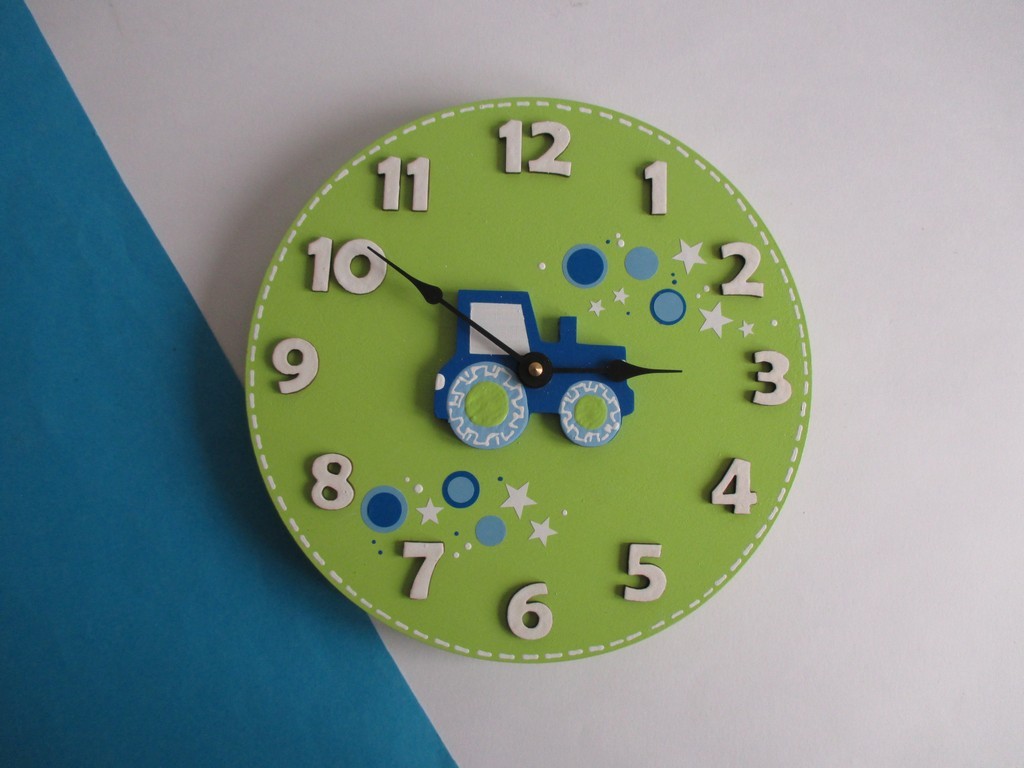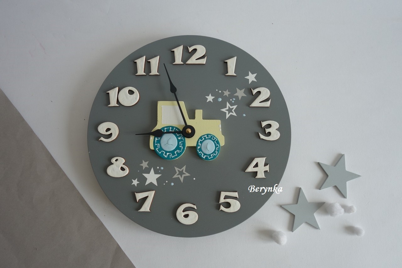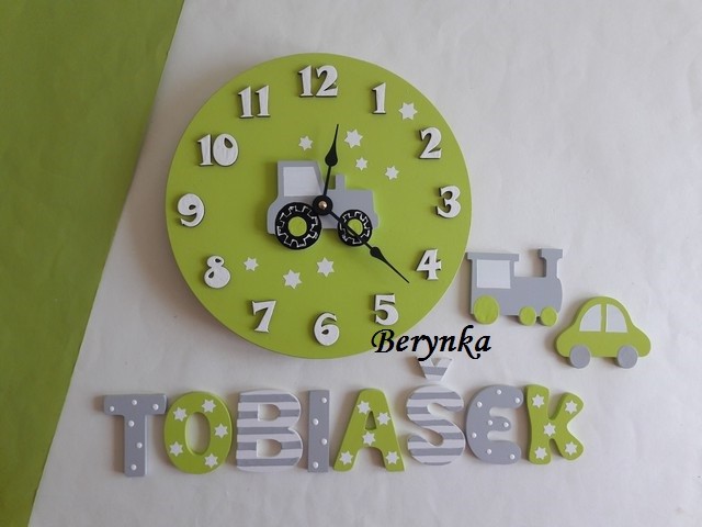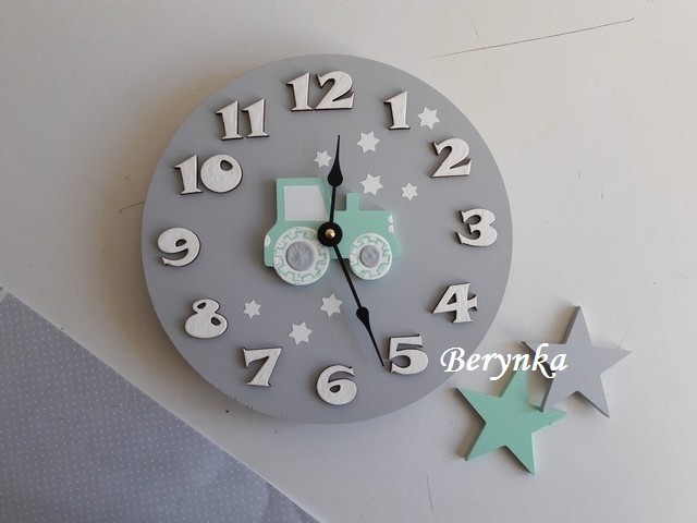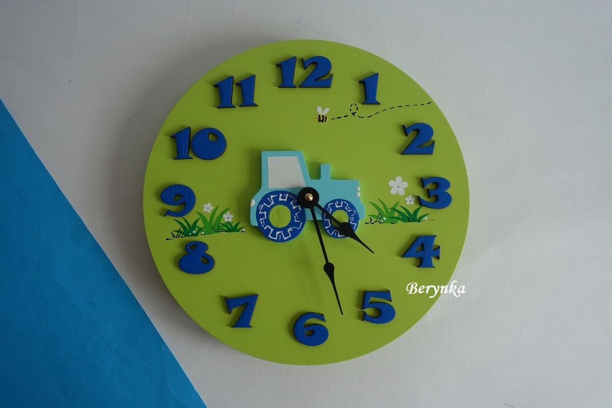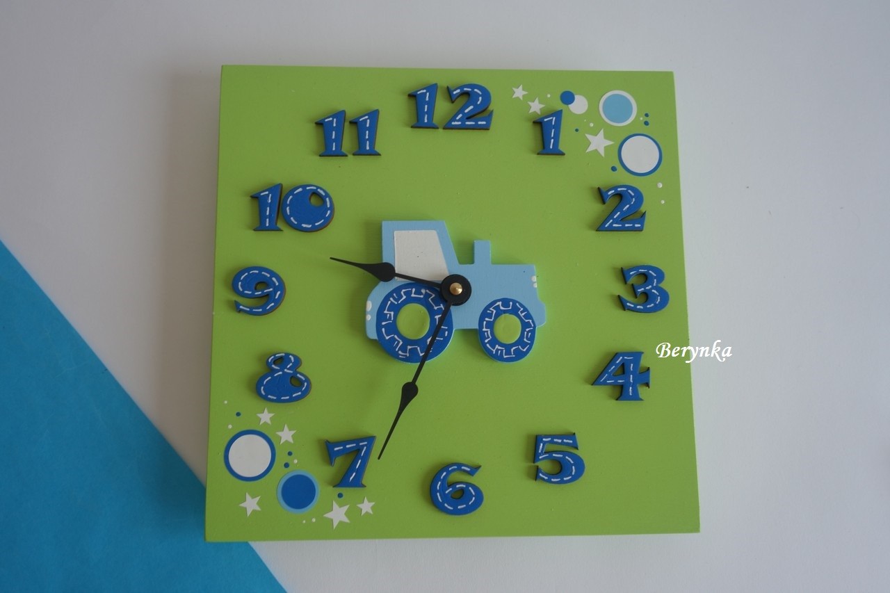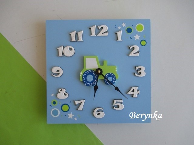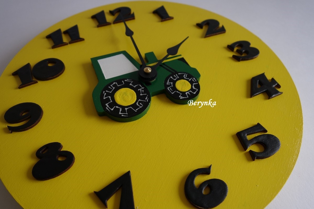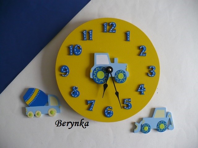 - číslice i traktor jsou vyřezané zvlášť a na hodinách nalepené