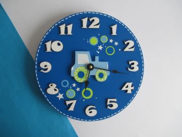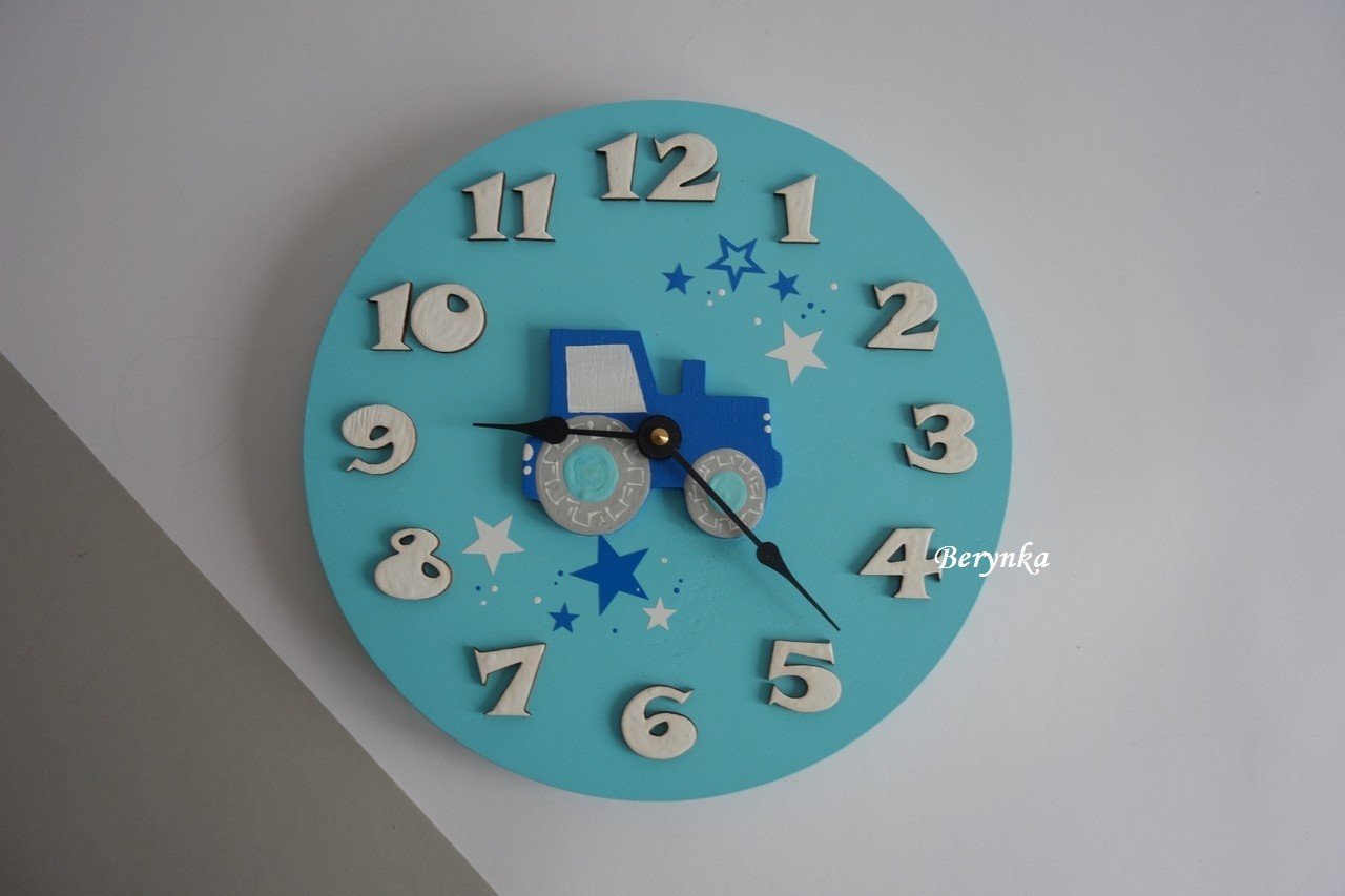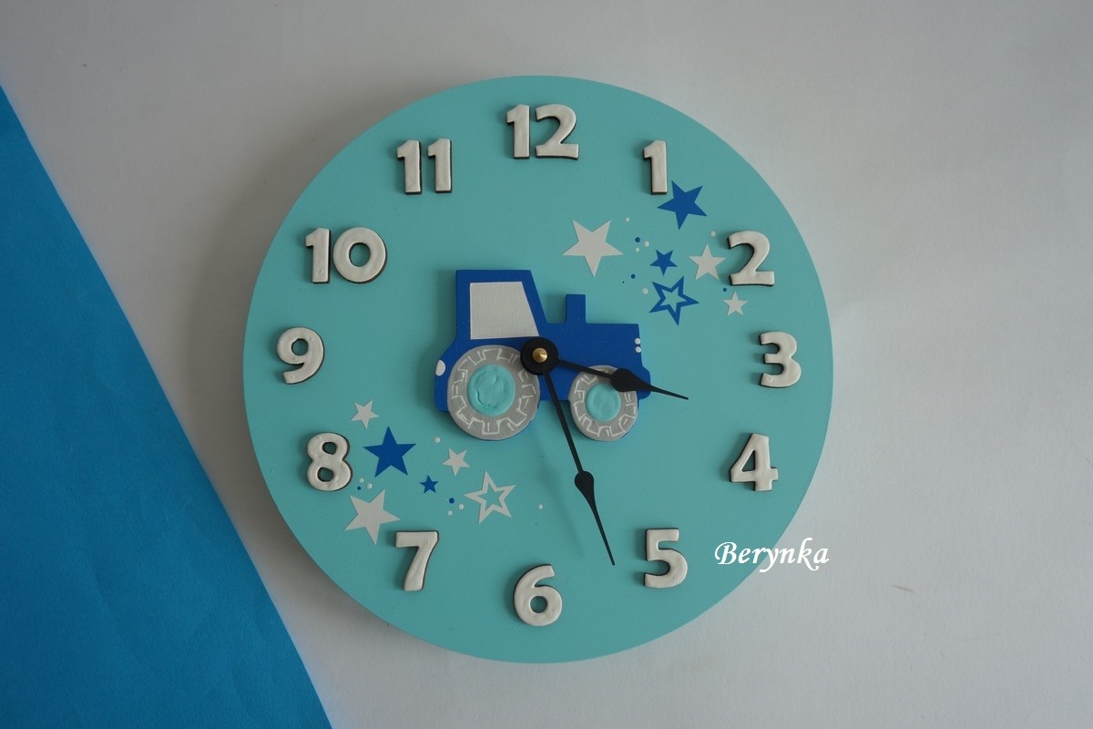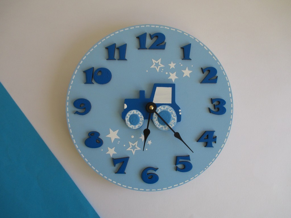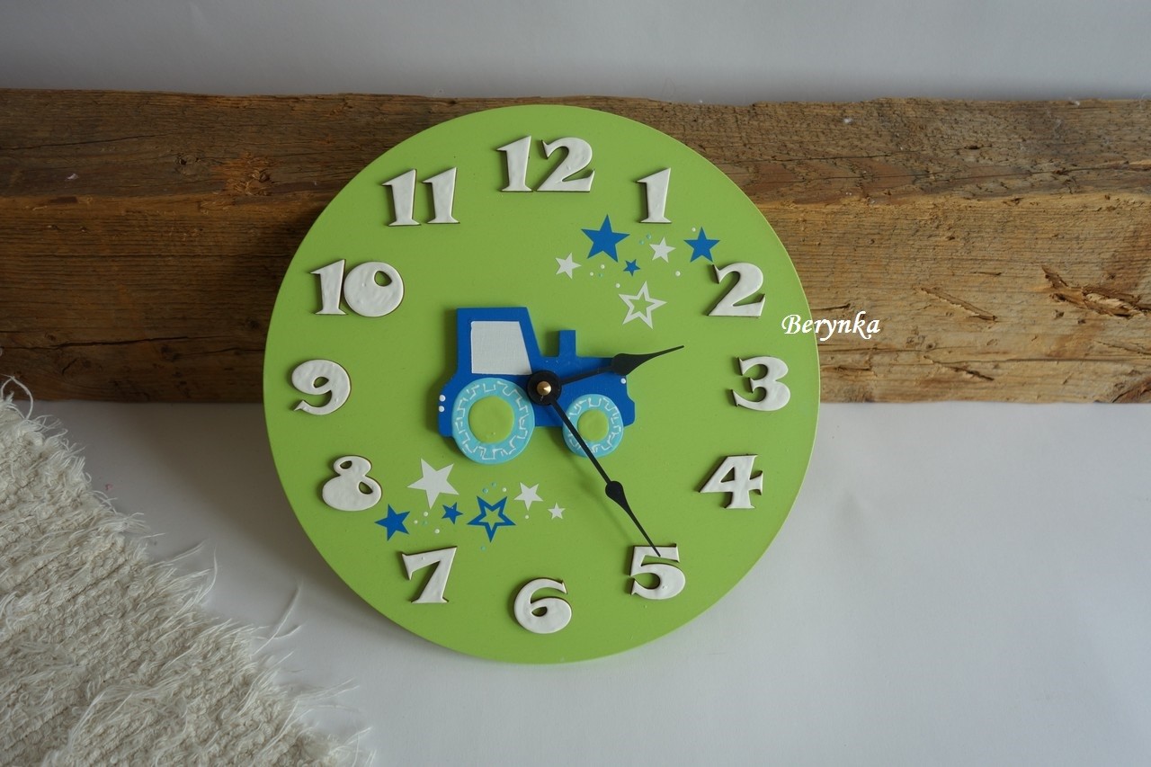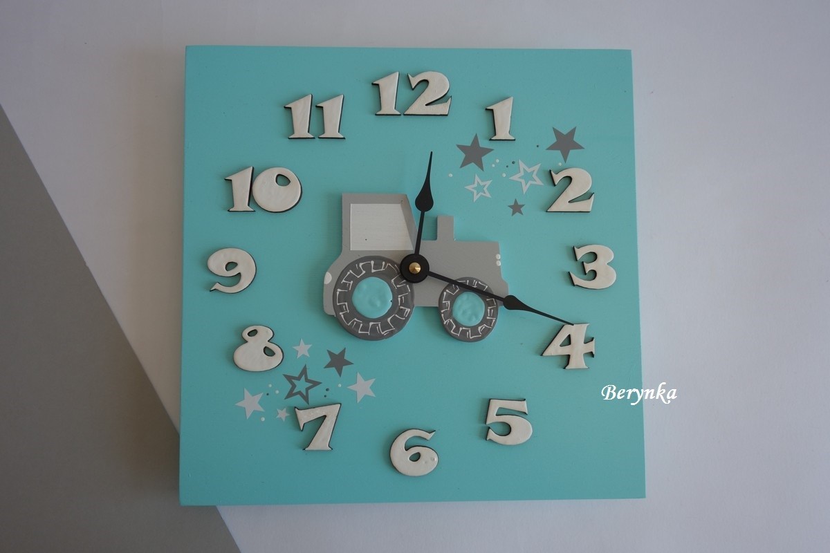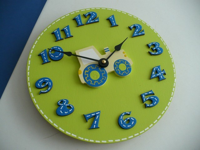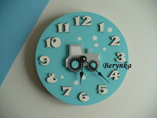 - číslice i traktor jsou vyřezané zvlášť a na hodinách nalepené