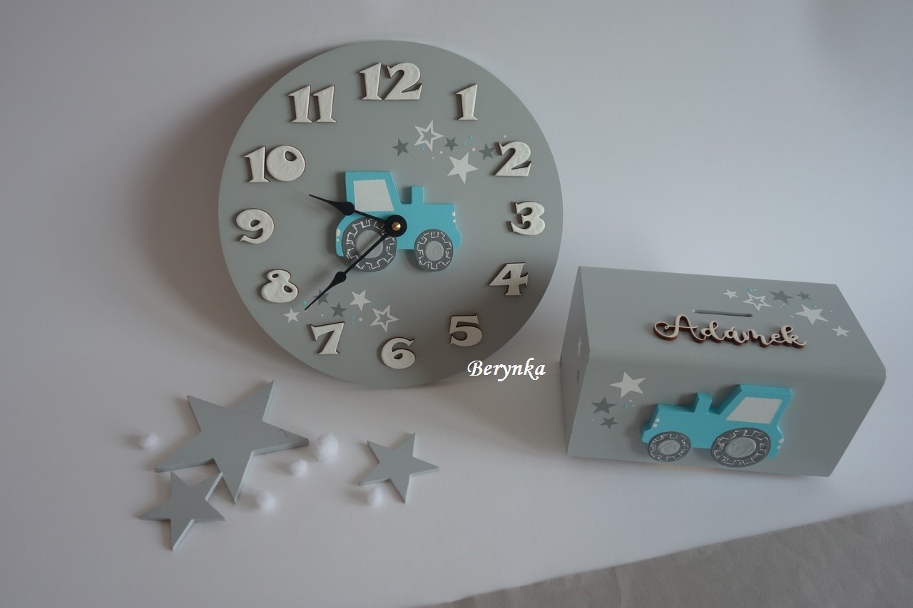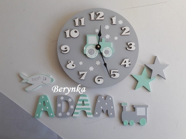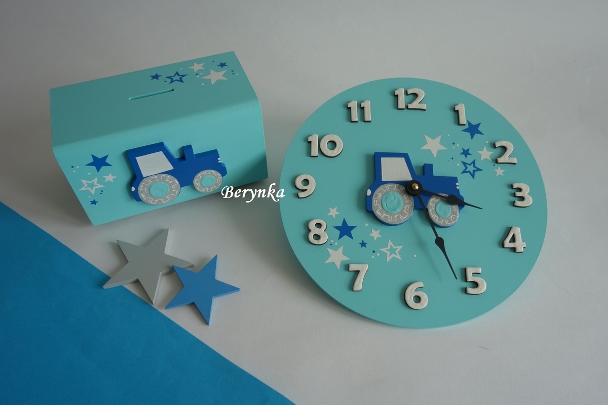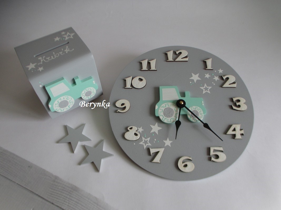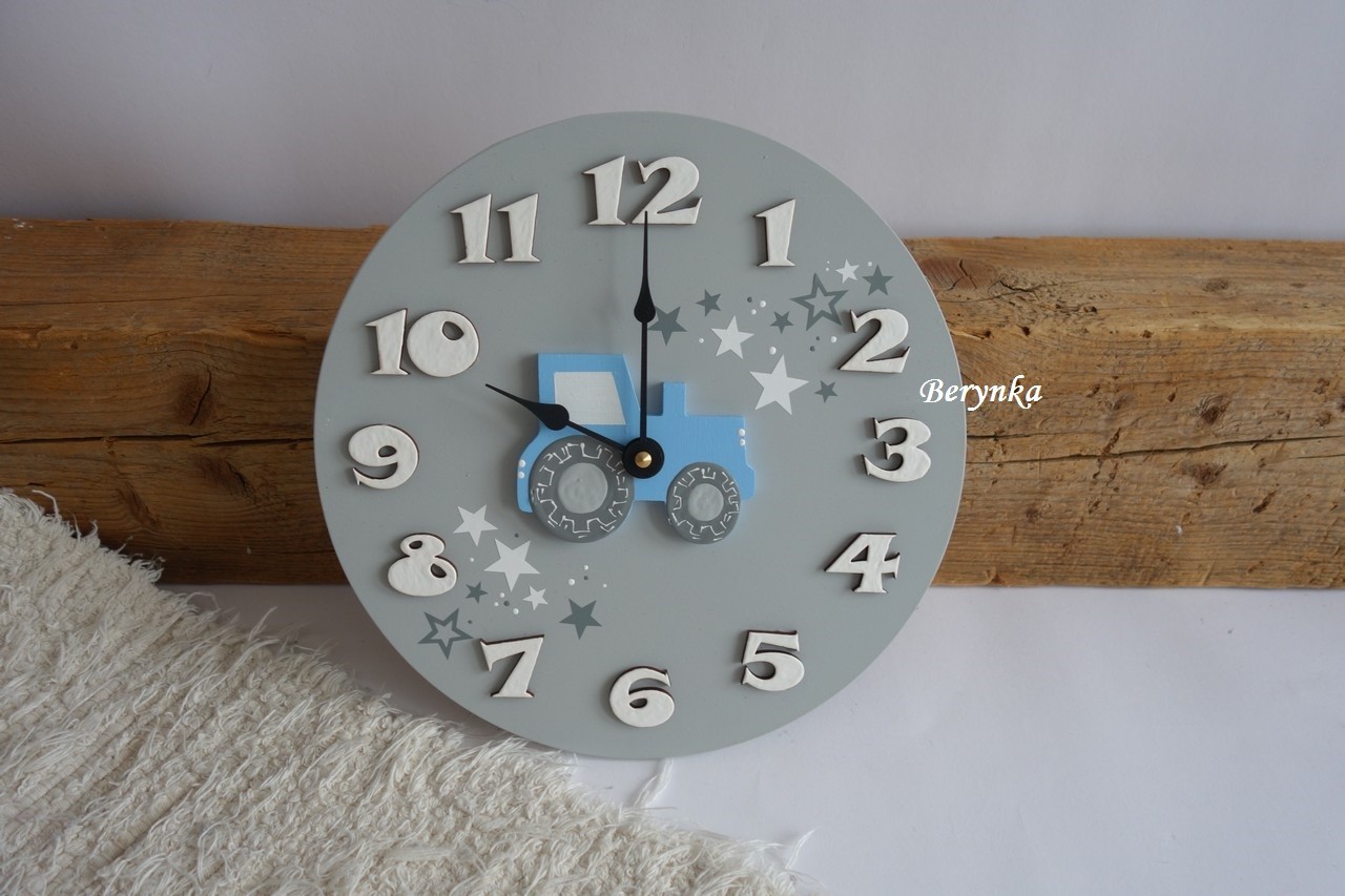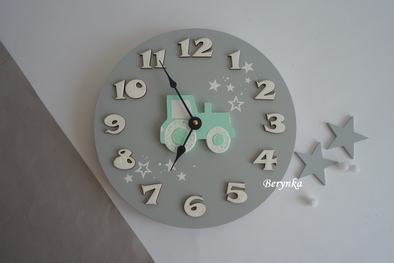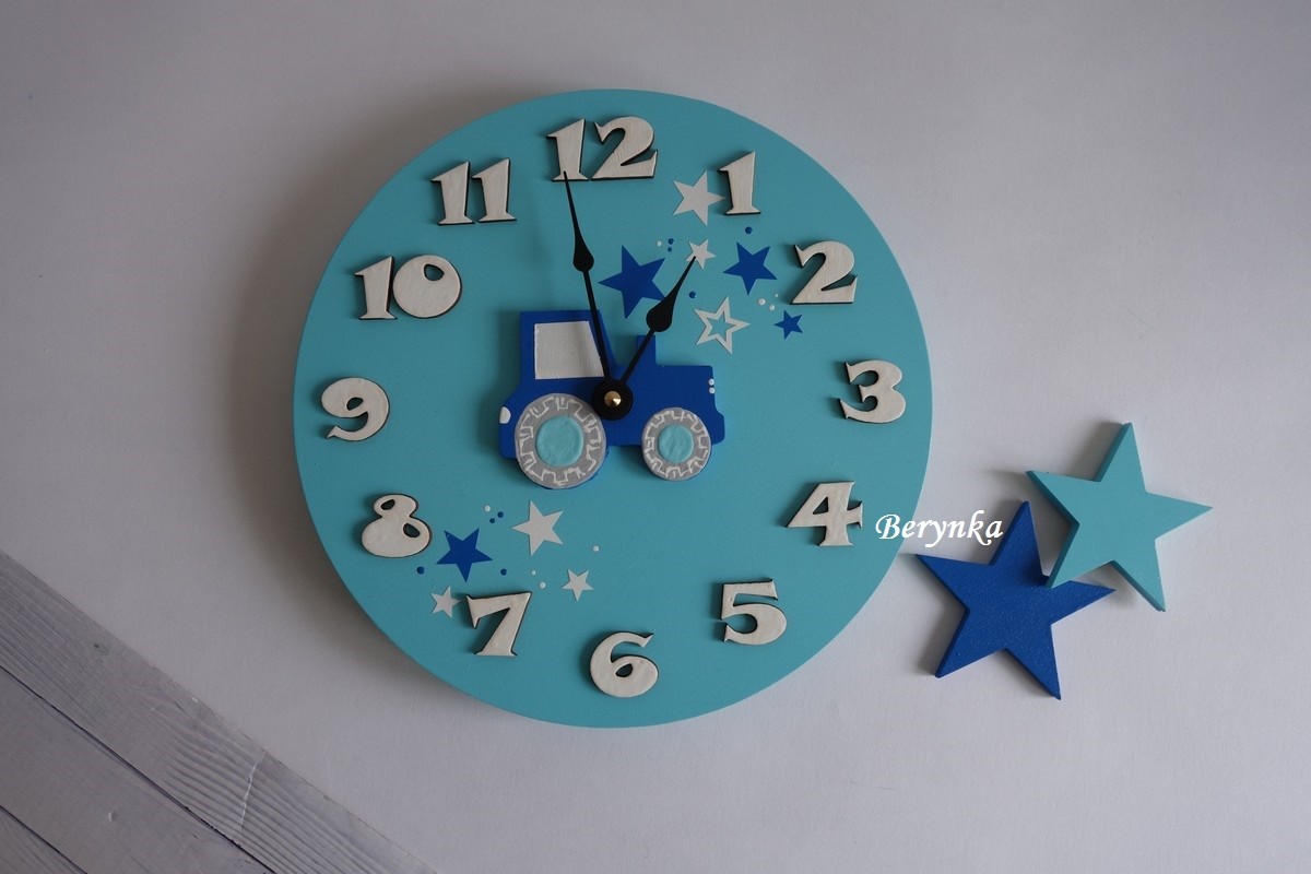 - číslice i traktor jsou vyřezané zvlášť a na hodinách nalepené