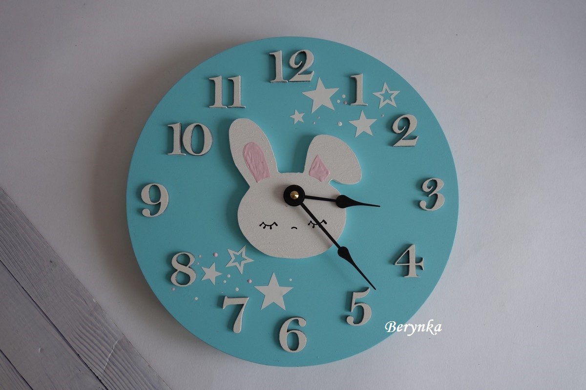 - číslice i zajíček jsou vyřezané zvlášť a na hodinách nalepené