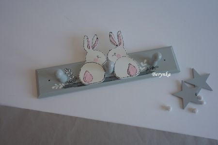 - s pěti háčky 46 x 6 cm … 380,- Kč - cena je uvedena za věšák bez vyřezaných dekorací … dekorace zajíček + á 70,- Kč