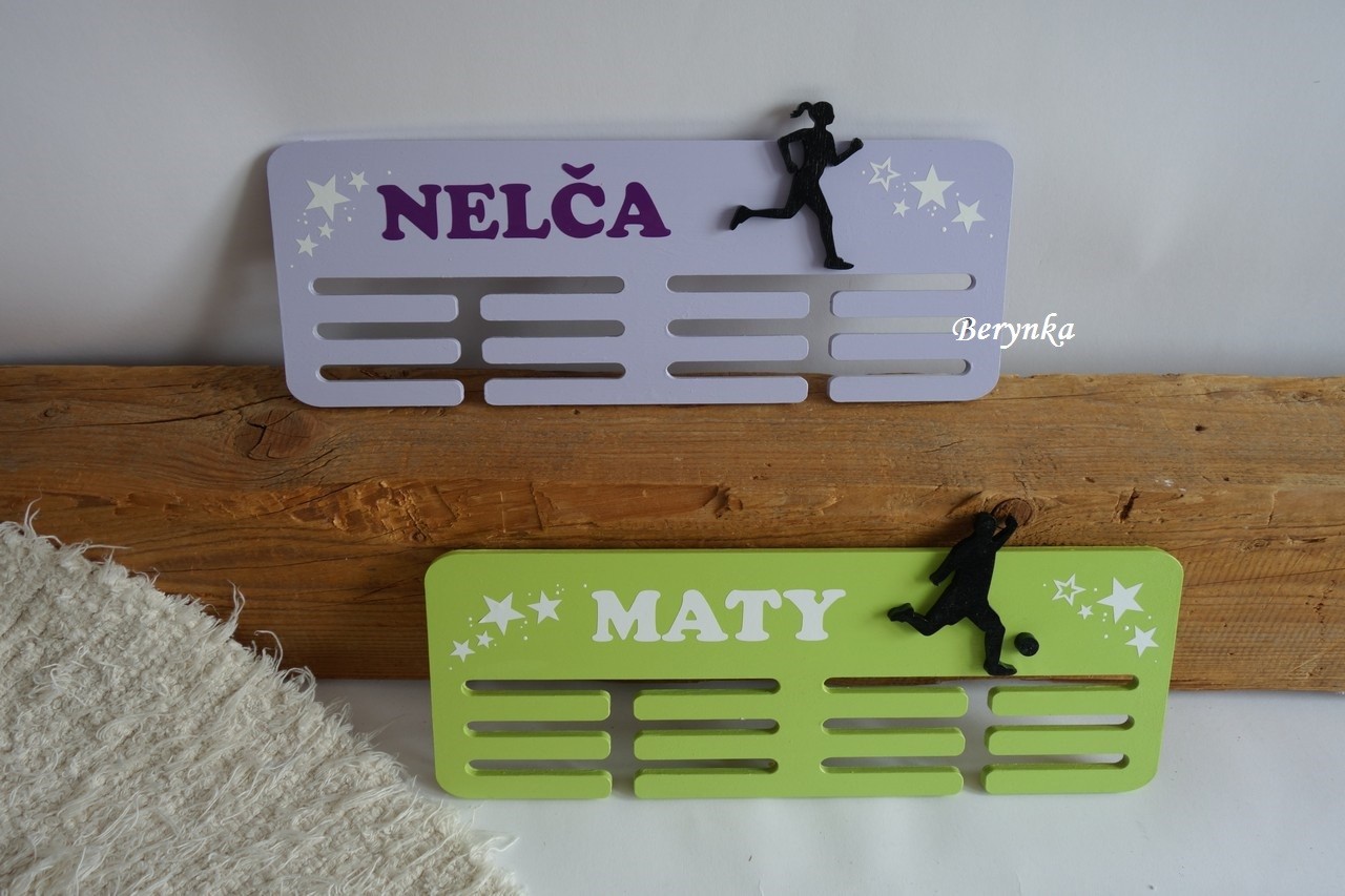 - běžec je samostatně vyřezaný z překližky, namalovaný a nalepený