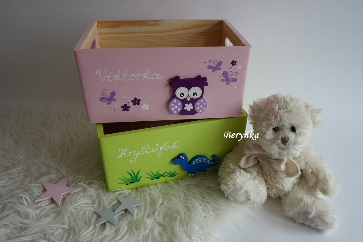 Dřevěný úložný box pro děti - na hračky, stavebnice, plyšáky ...