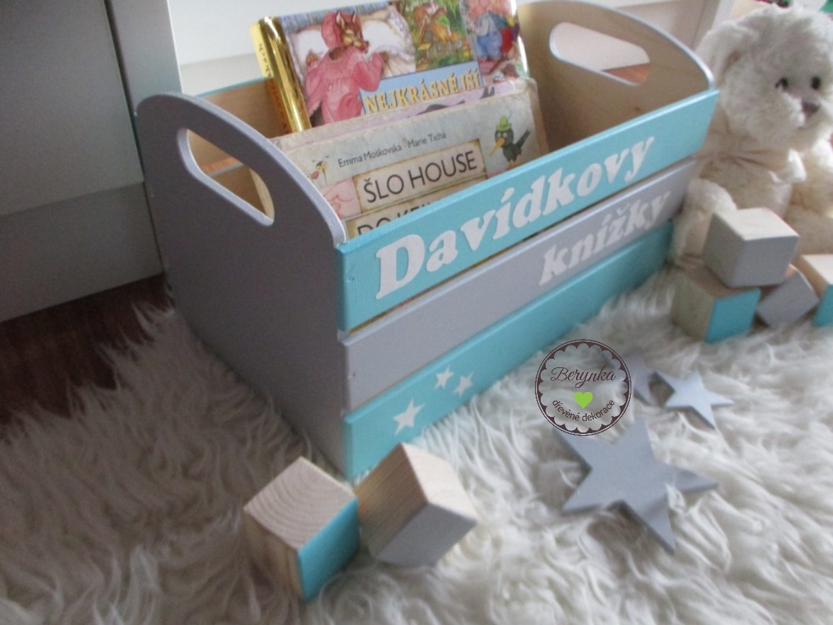 Dřevěný úložný box pro děti - na knížky, hračky, stavebnice, plyšáky ...