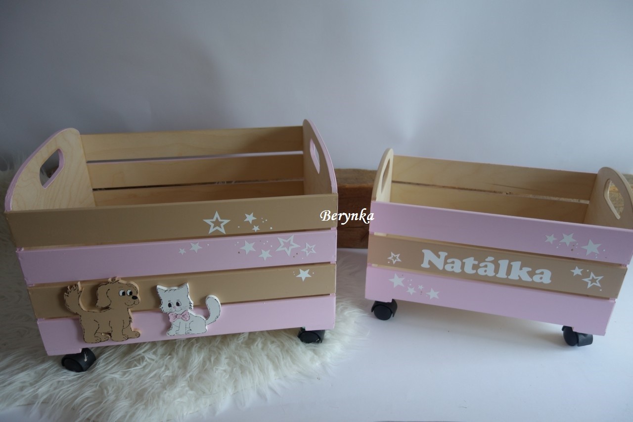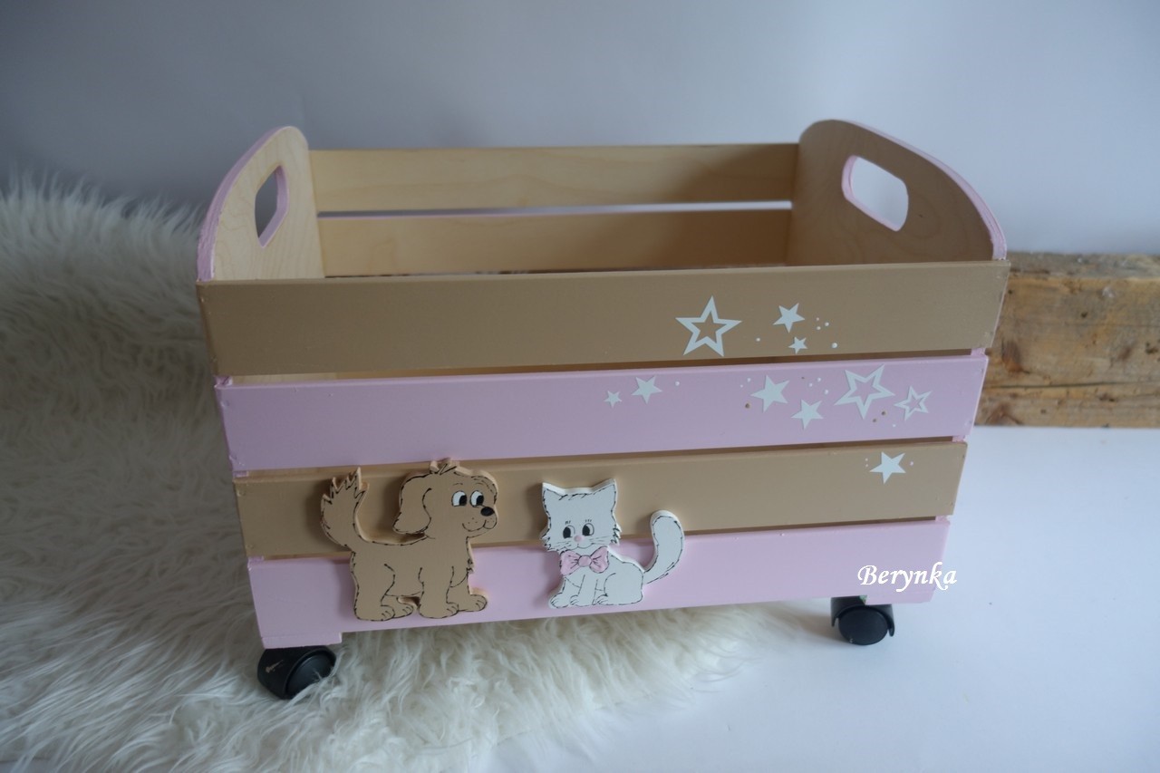 Dřevěná bedýnka s kočičkou a pejskem