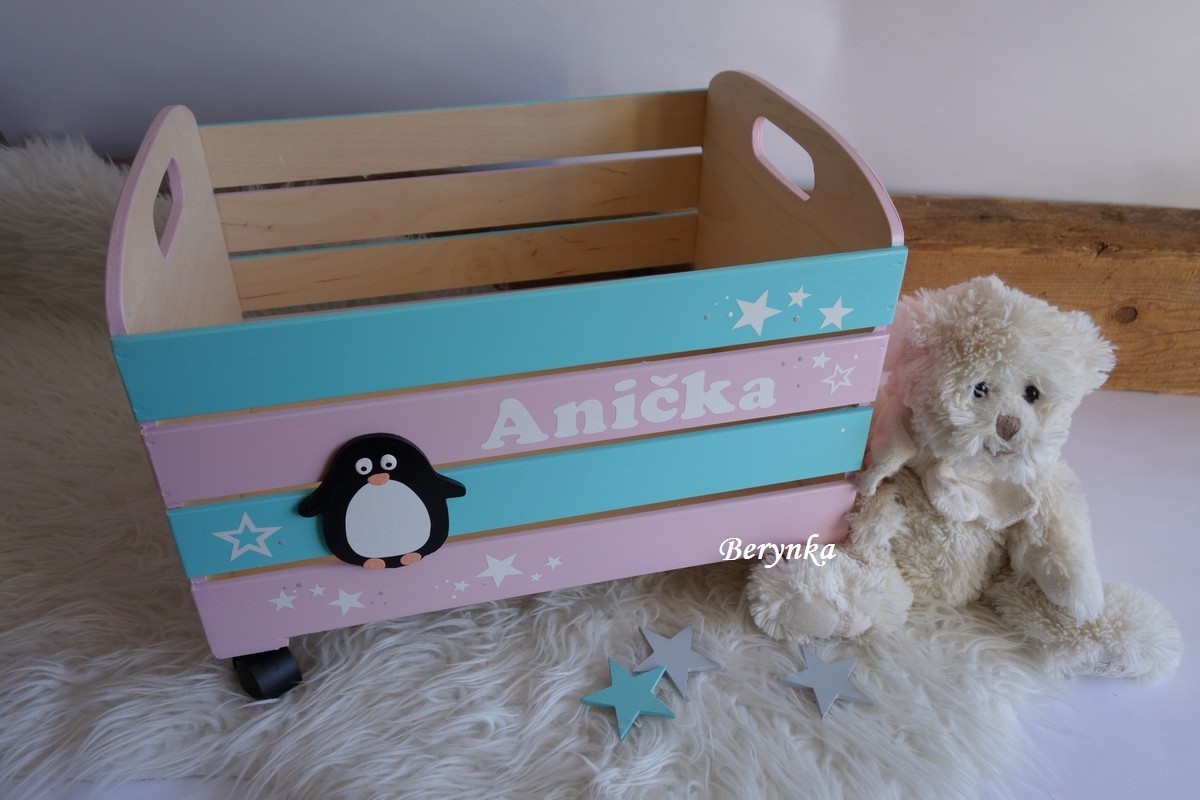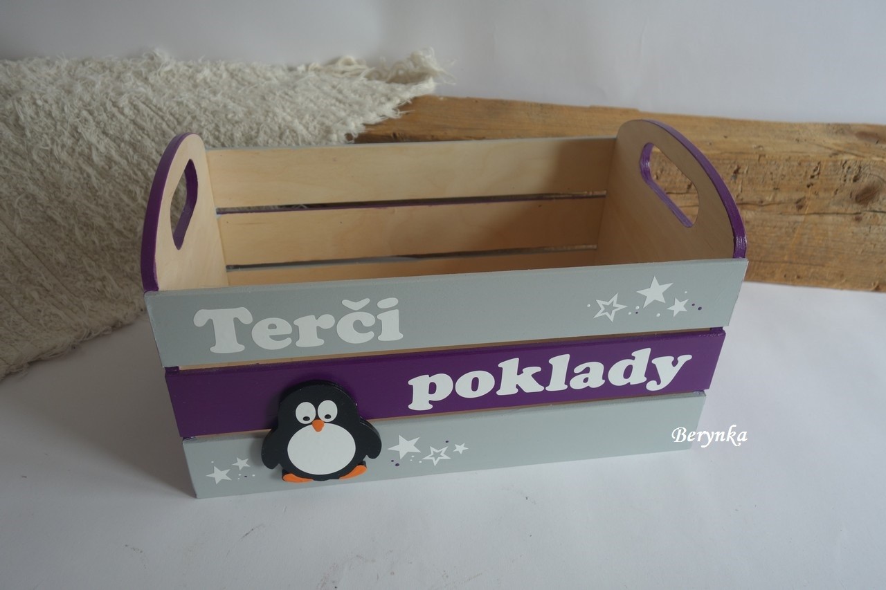 Dřevěná bedýnka s tučňákem