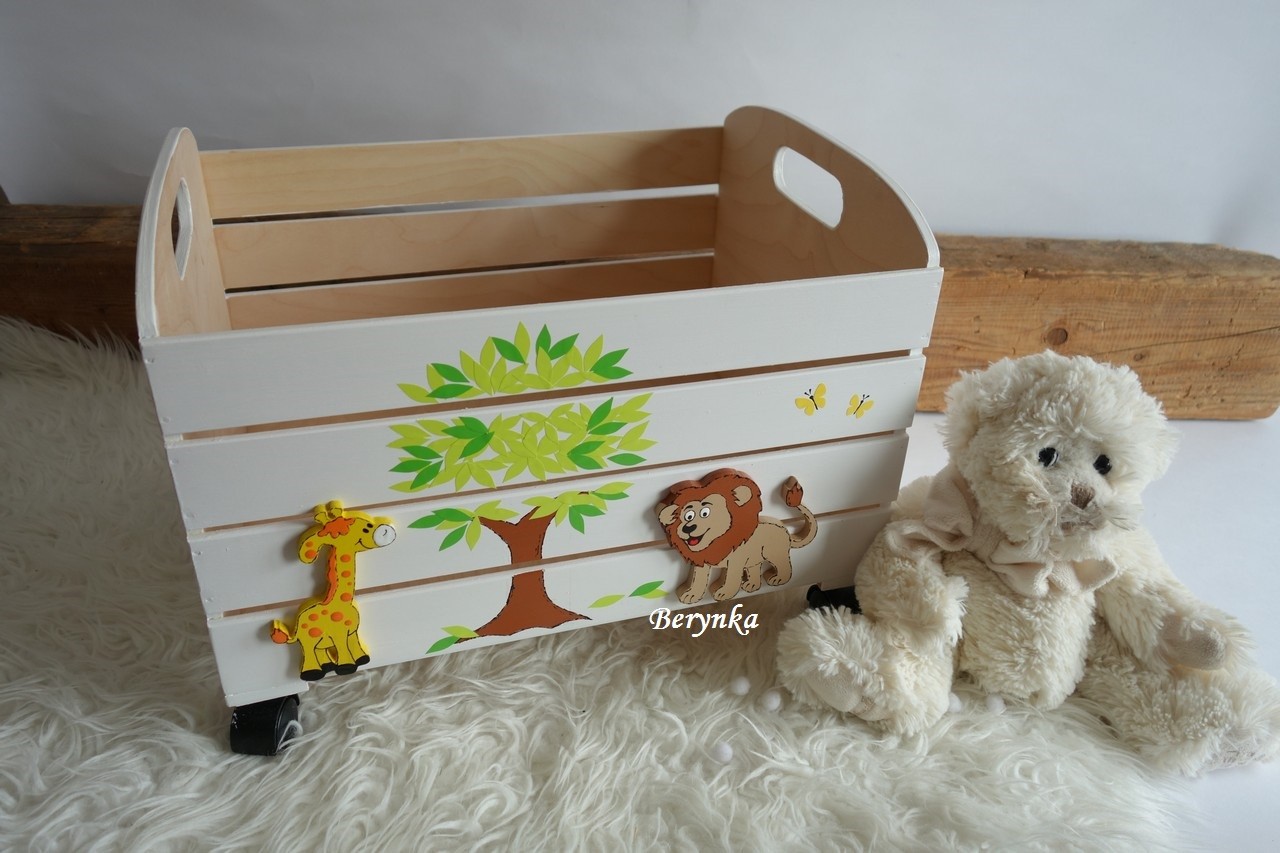 Dřevěný úložný box pro děti - na knížky, hračky, stavebnice, plyšáky ...