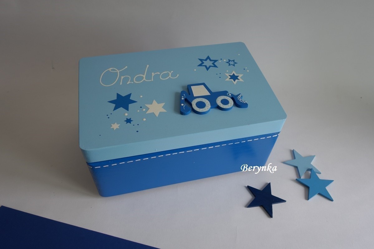 - bagr je vyřezaný z překližky, ručně namalovaný a na bedýnce přilepený