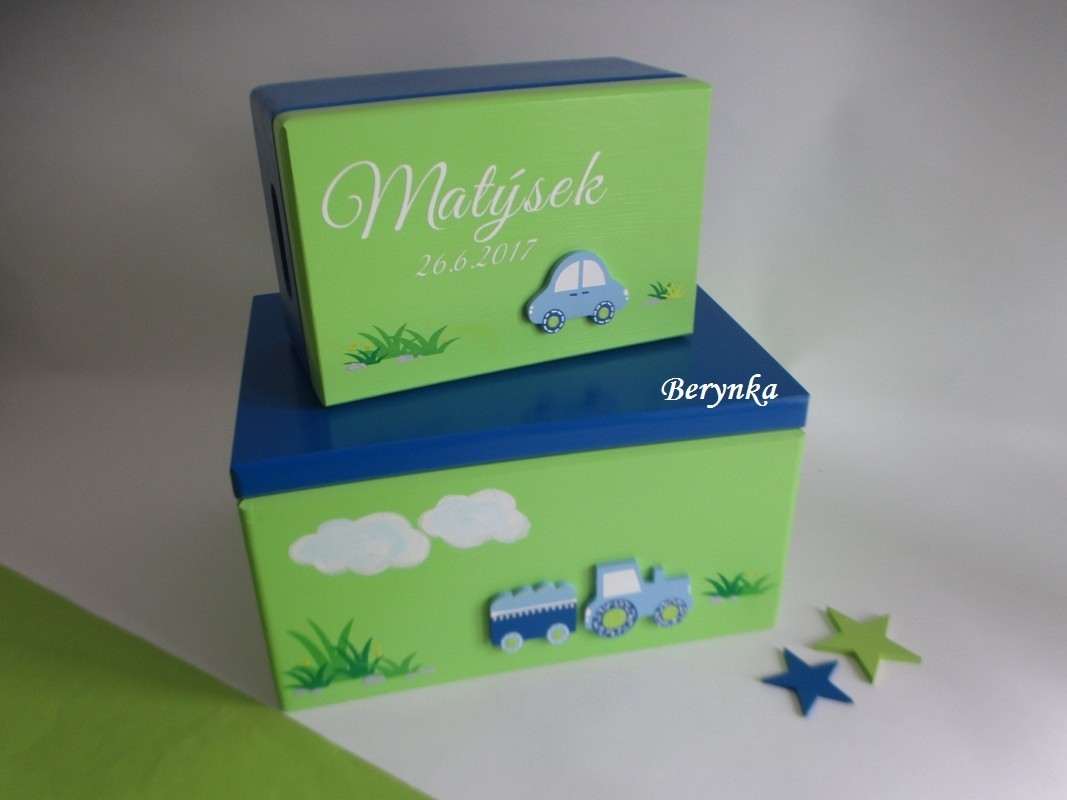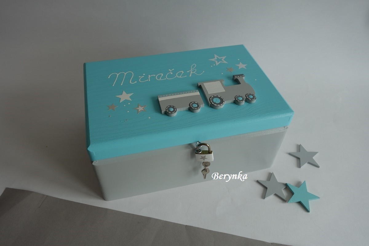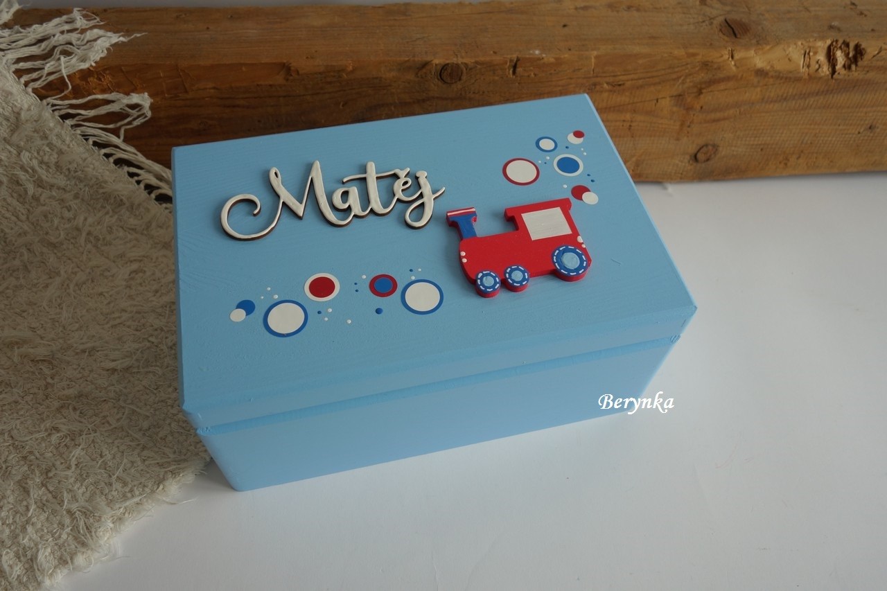 Dřevěná bedýnka s mašinkou - různá provedení