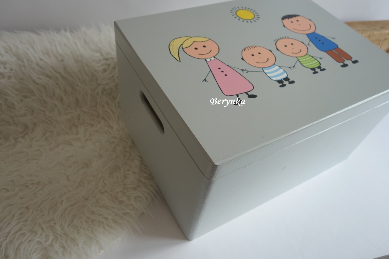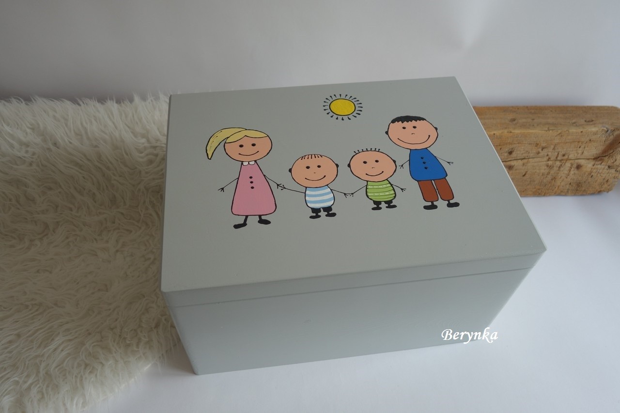 Dřevěná bedýnka s rodinkou