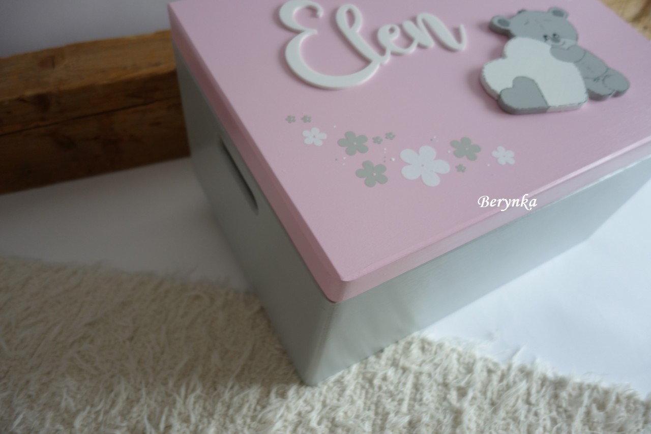 - jméno a medvídek jsou vyřezané z překližky, ručně namalované a na bedýnce přilepené
