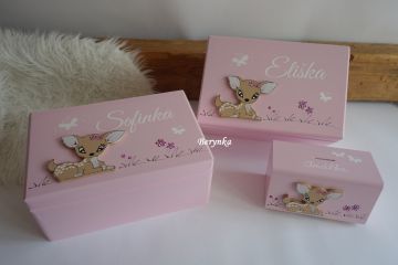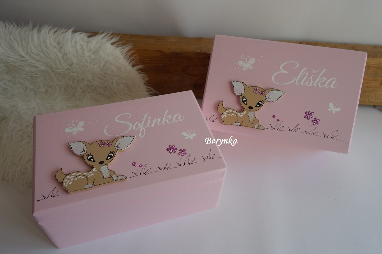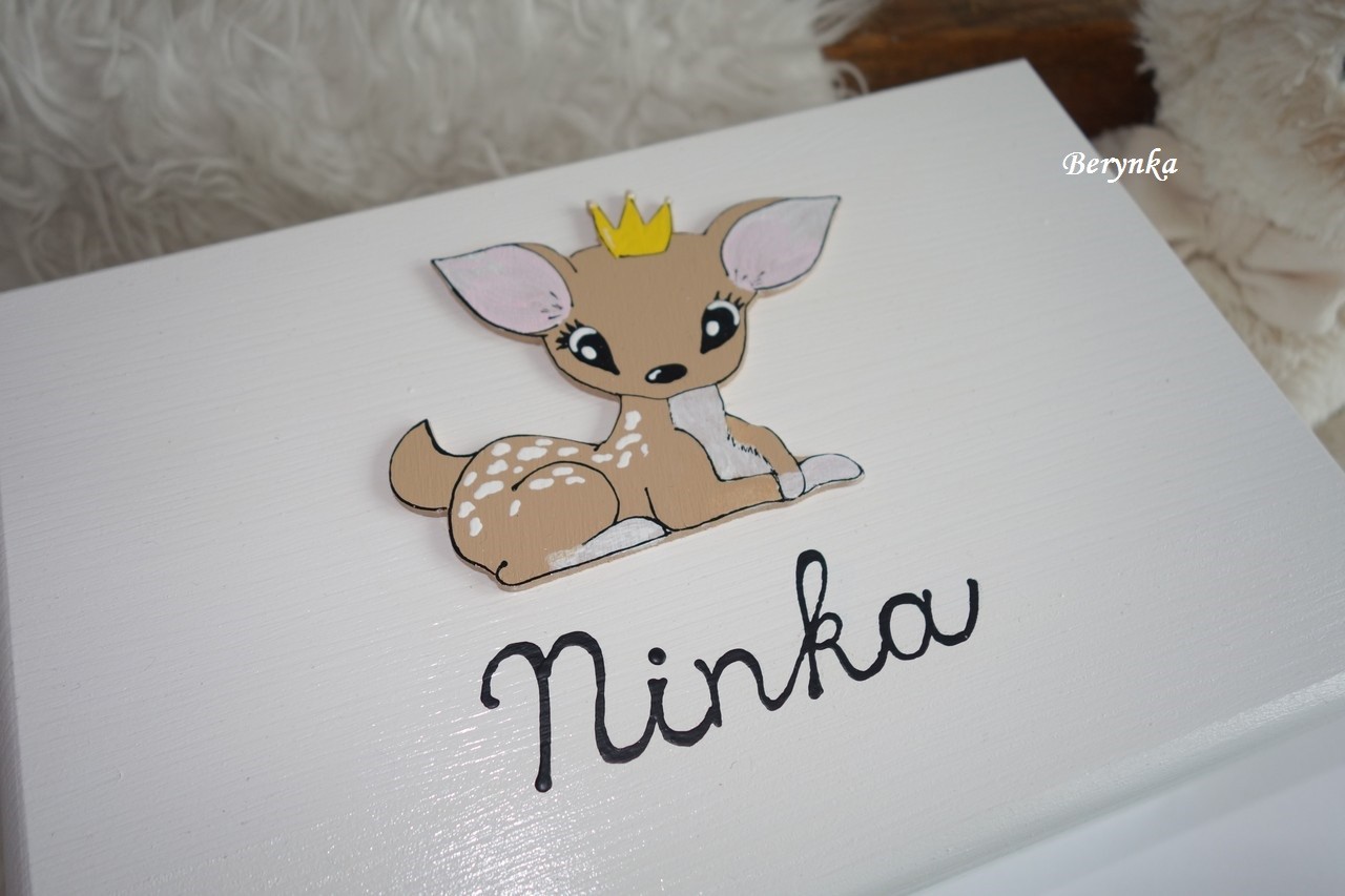 - srnečka je vyřezaná z překližky, ručně namalovaná a na bedýnce přilepená