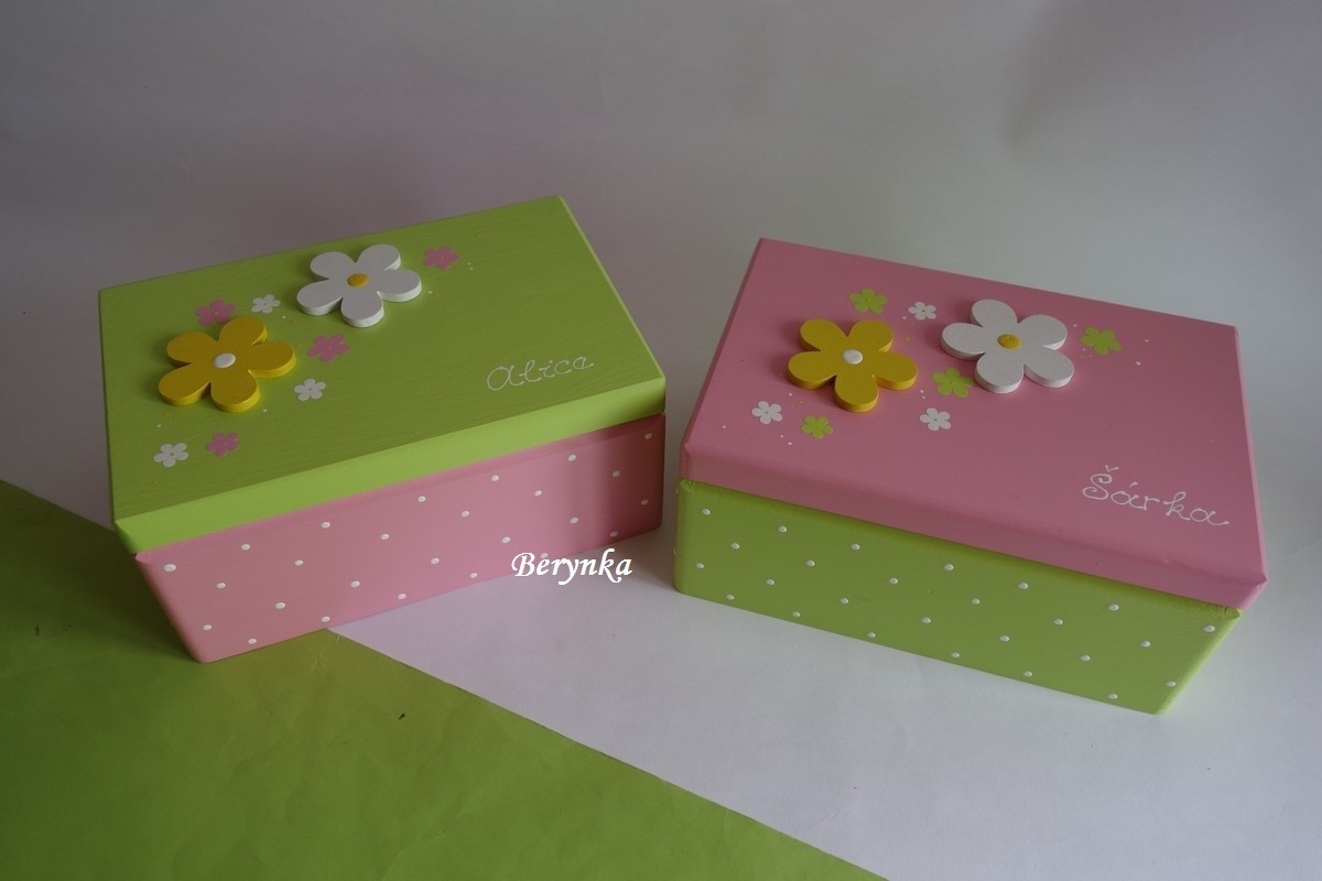 - kytičky jsou vyřezané z překližky, ručně namalované a na bedýnce přilepené