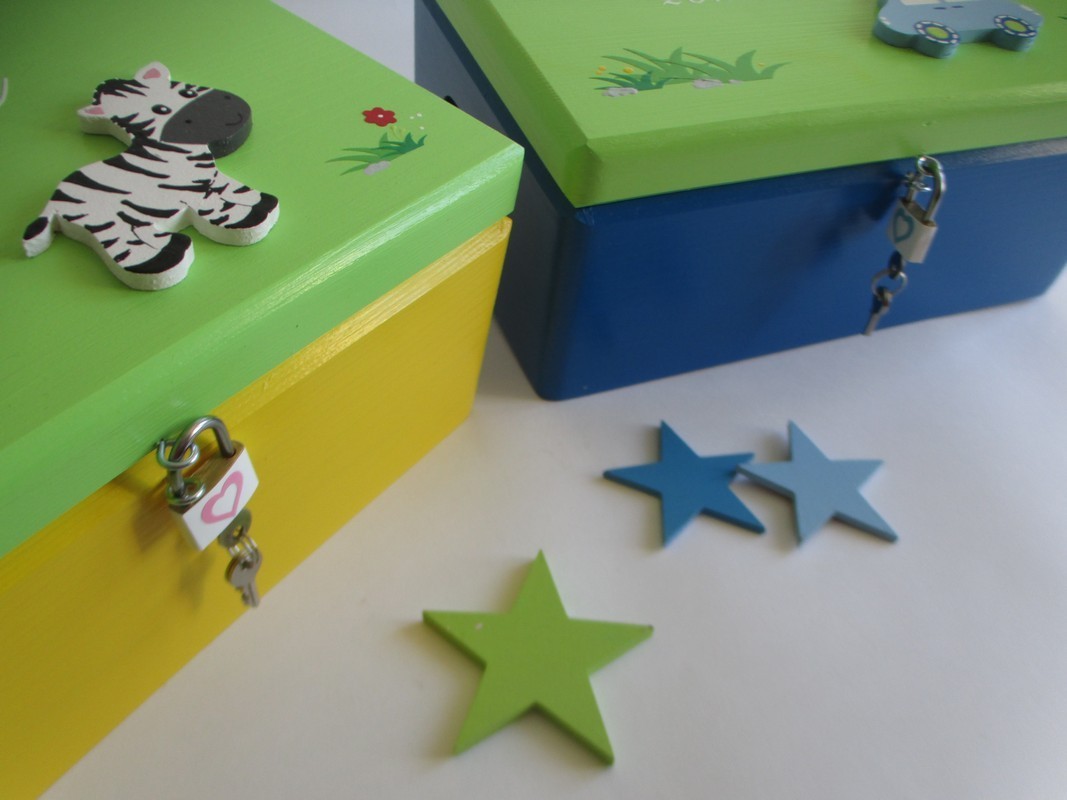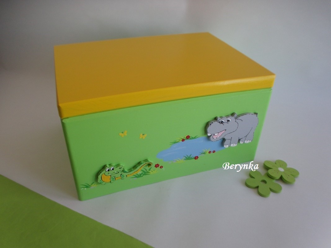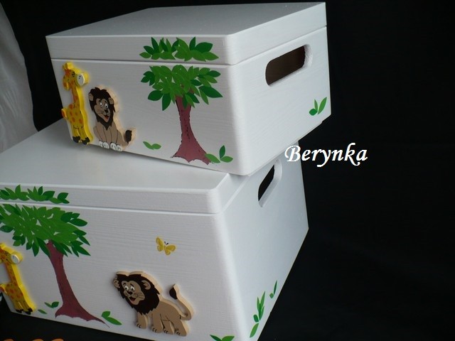 - zvířátka jsou vyřezaná z překližky, ručně namalovaná a na bedýnce přilepená