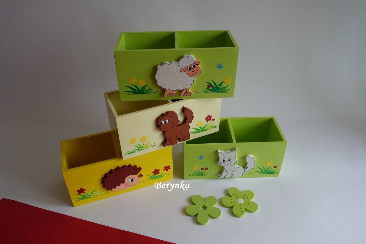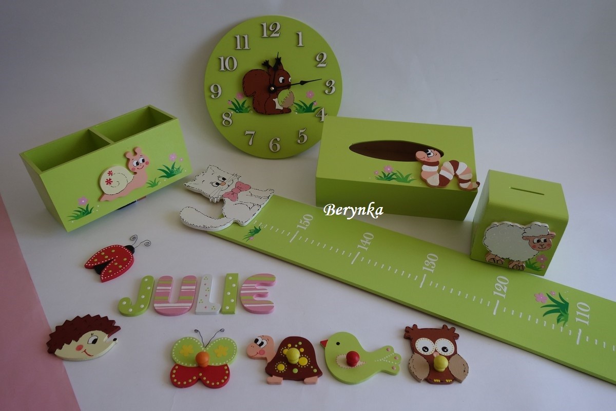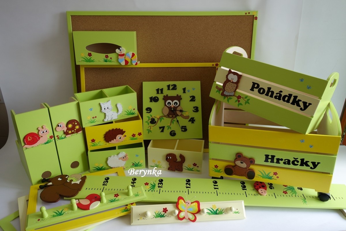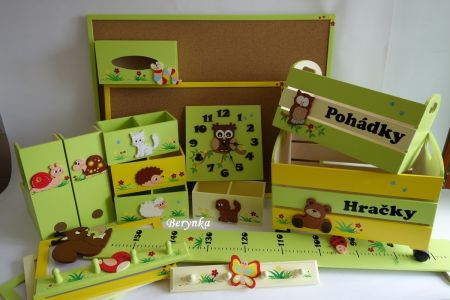 Dřevěné dekorace - zeleno-žluté se zvířátky