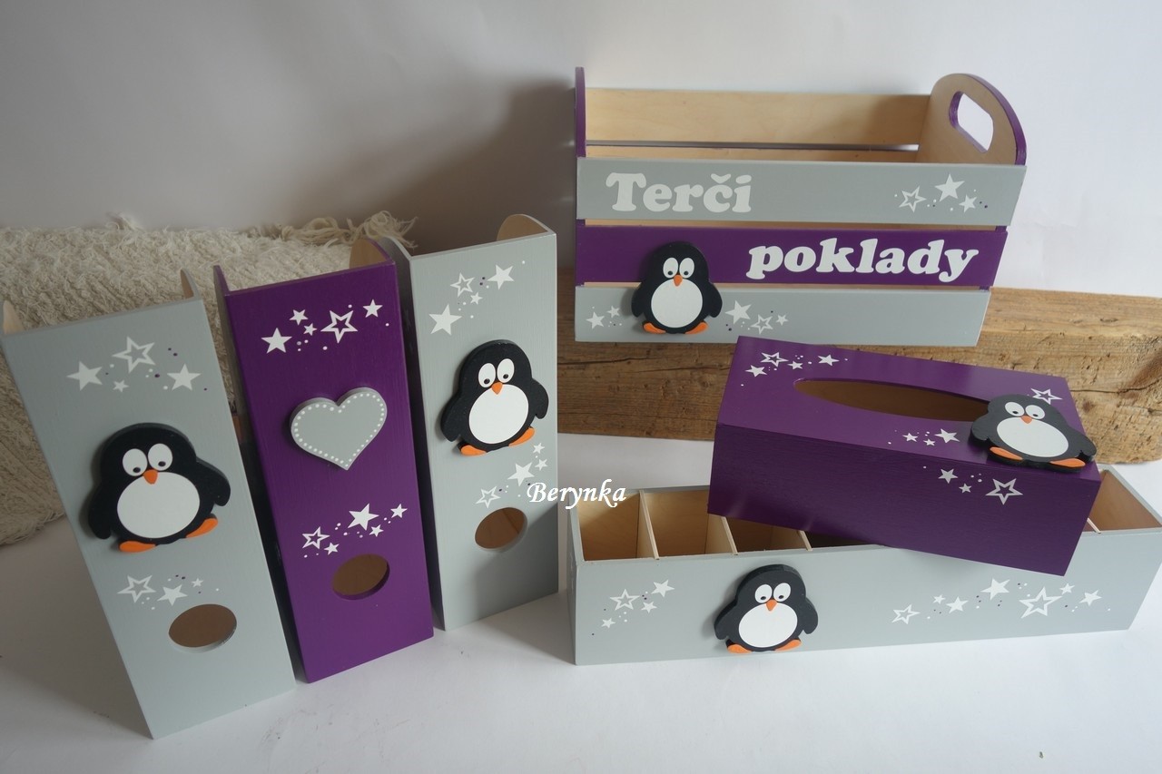 Dekorace šedé s tučňákem