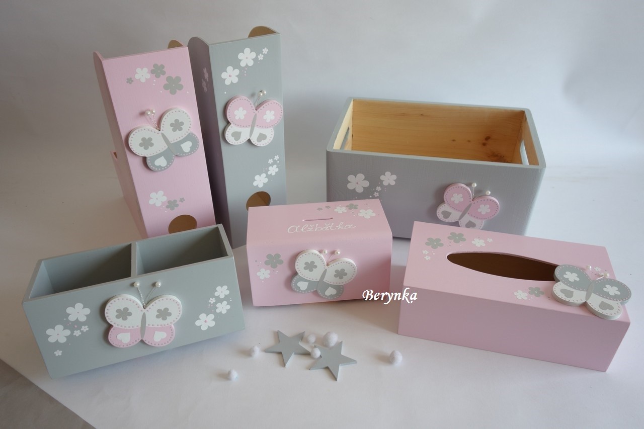 Dekorace v pudrově růžové a šedé s motýlkem