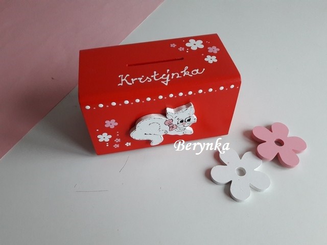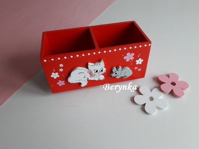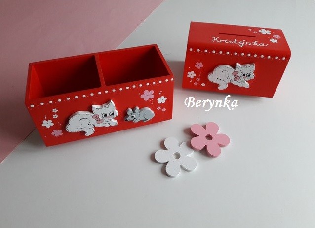 Dřevěné dekorace - červené s kočičkou