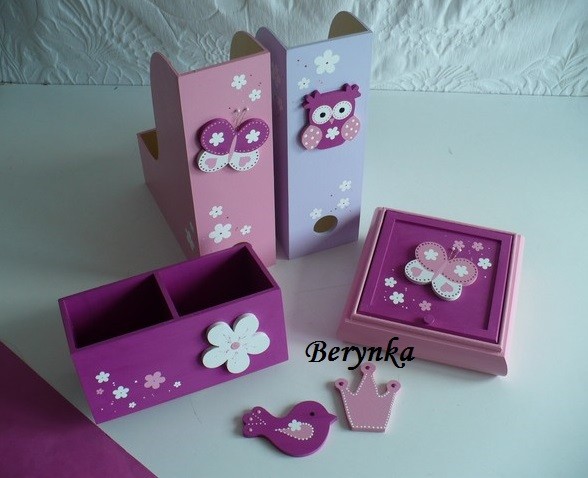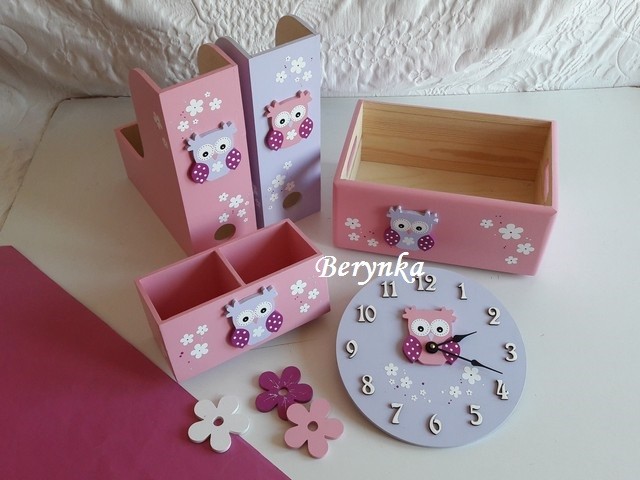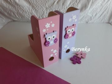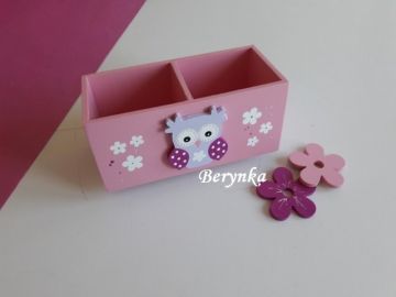 Dřevěné dekorace - fialovo-růžové se sovičkou