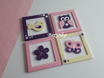 Dřevěné dekorace - fialovo-žlutá