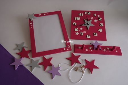 Dřevěné dekorace - malinová s levandulovou a šedou