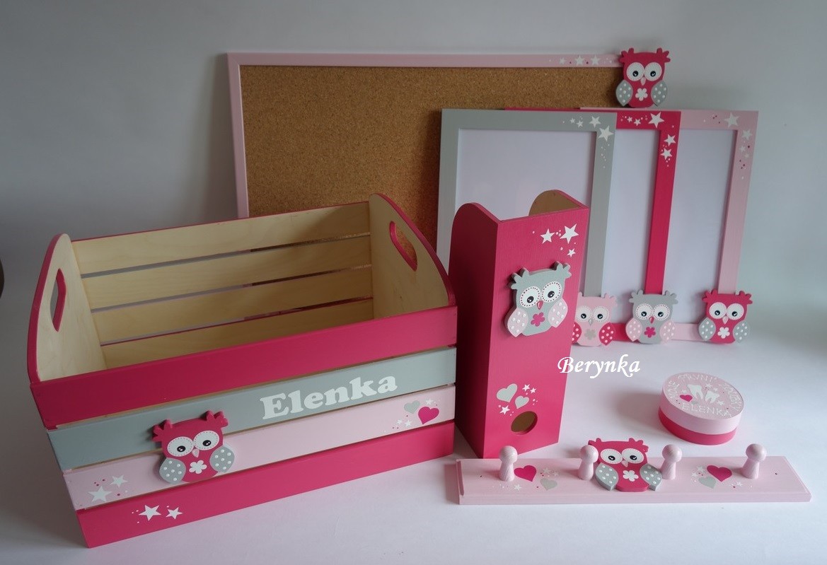 Dřevěné dekorace - malinová, šedá a pudrově růžová