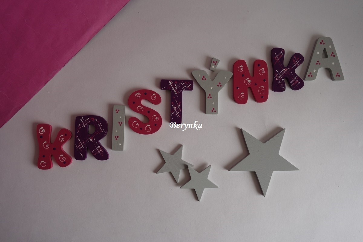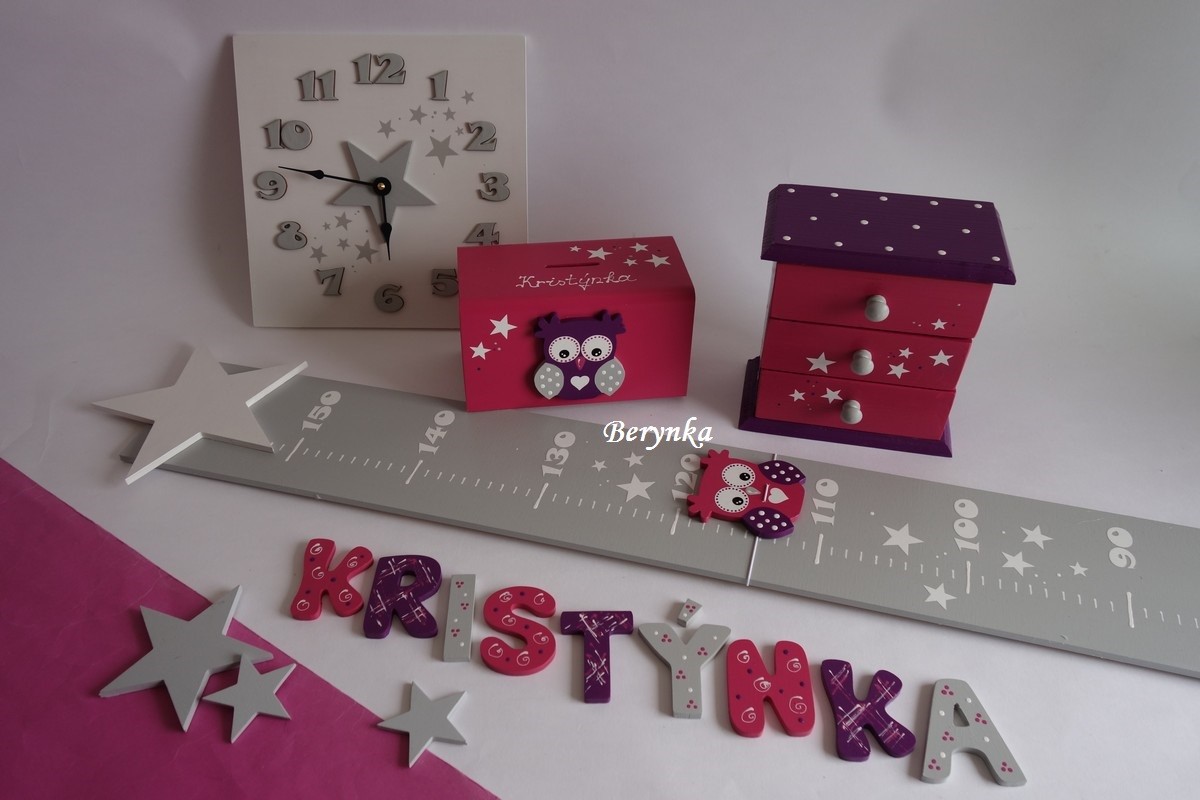 Dřevěné dekorace - malinové s tmavě fialovou a šedou