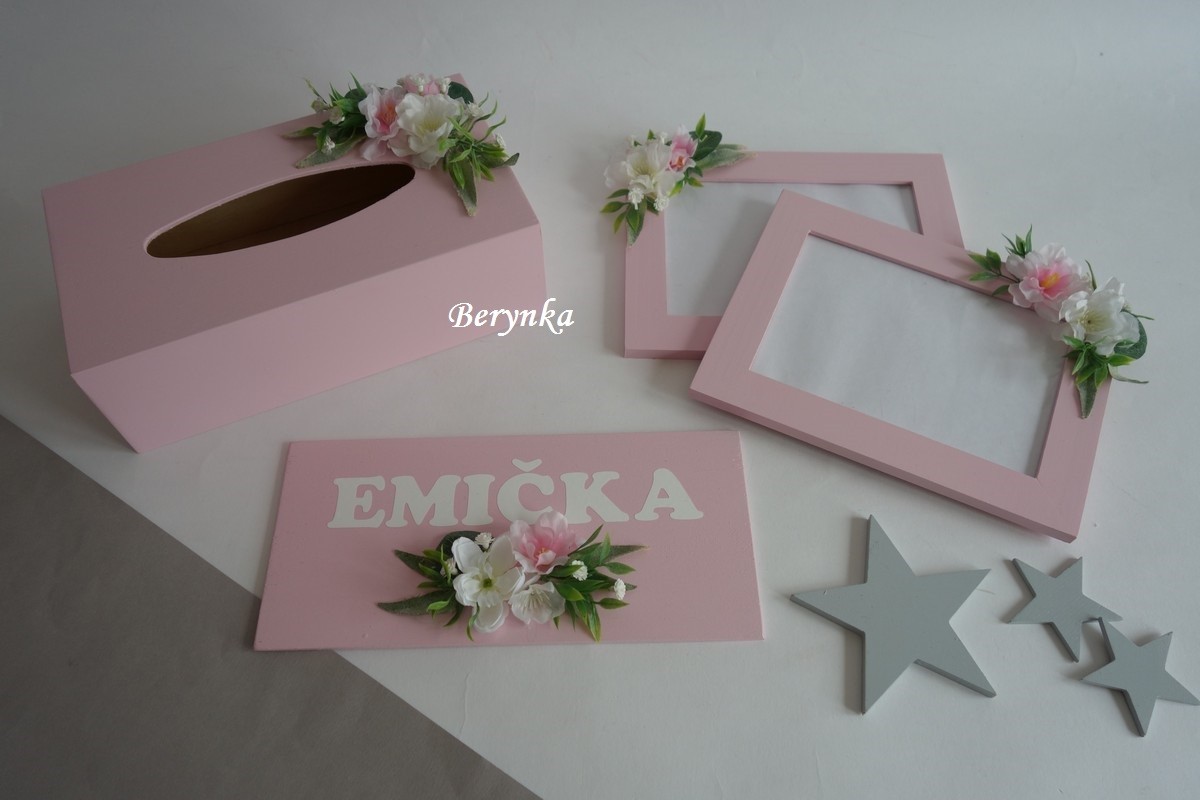 Dřevěné dekorace - pudrově růžové s kytičkami
