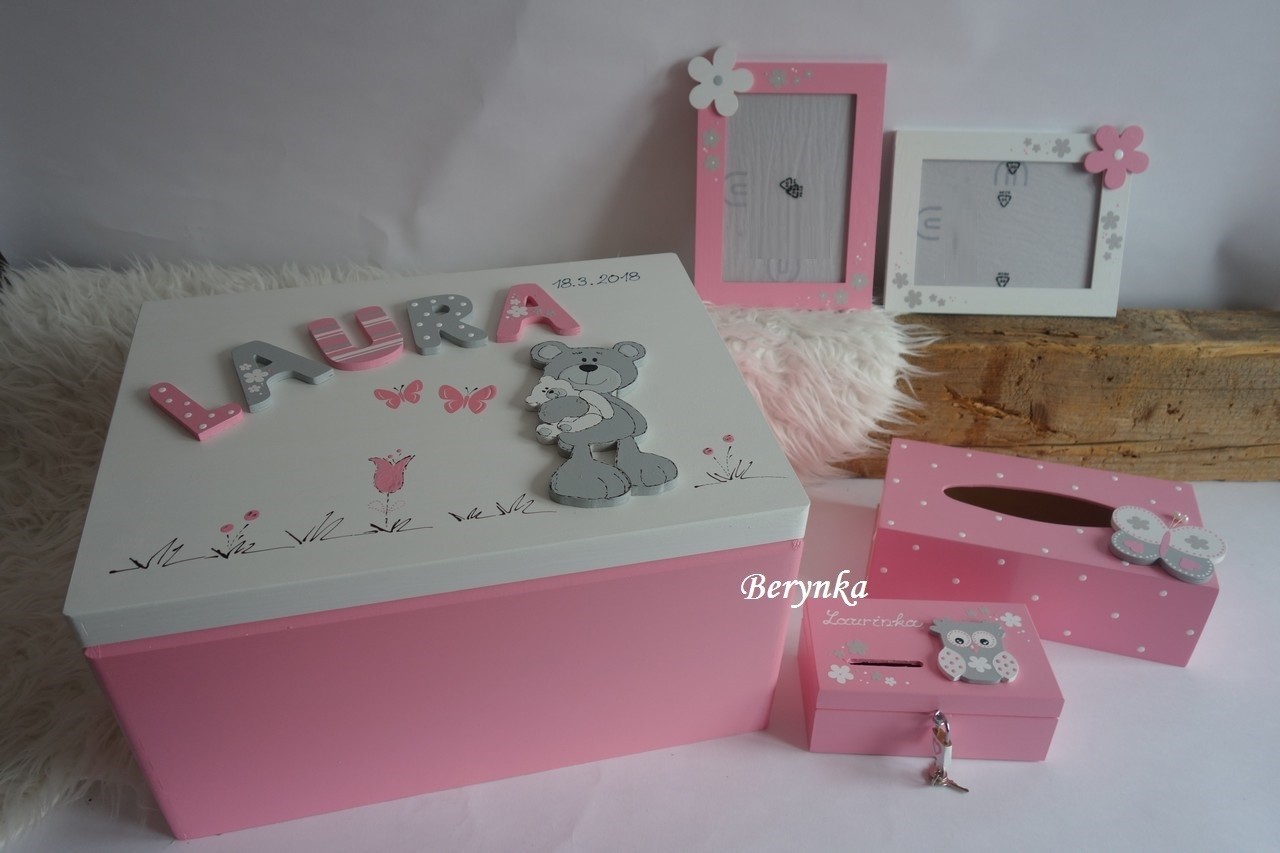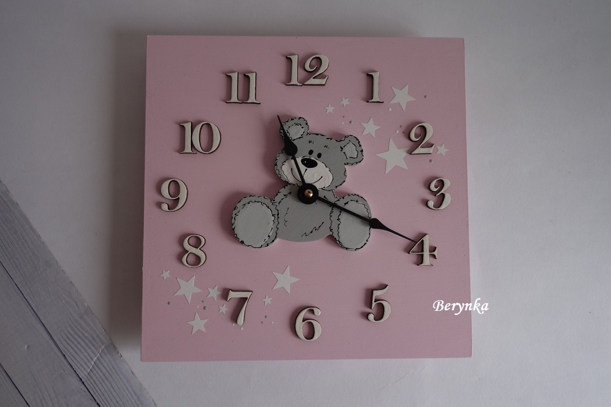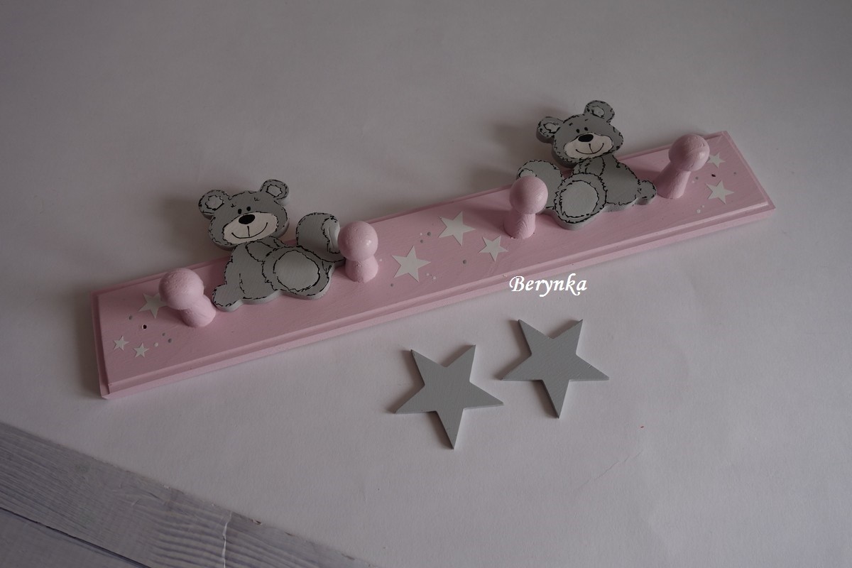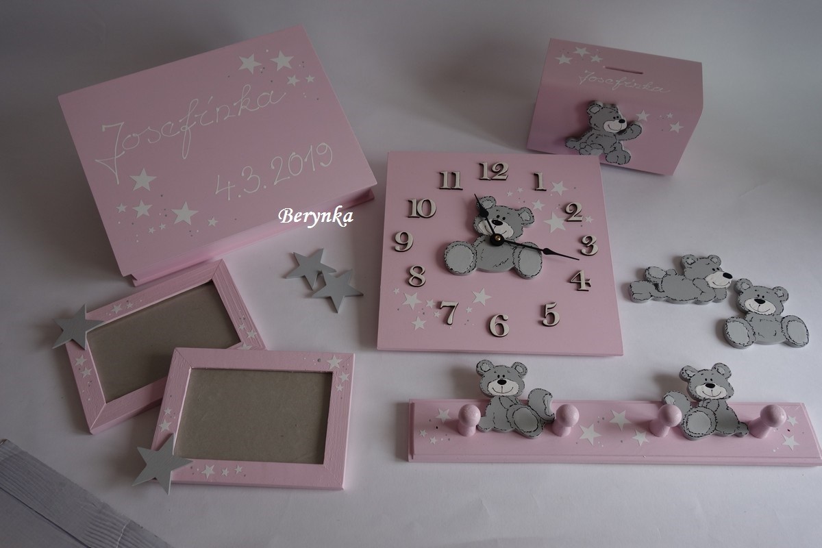 Dřevěné dekorace - pudrově růžové s medvídkem