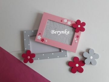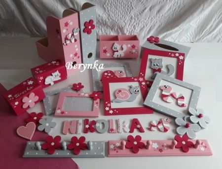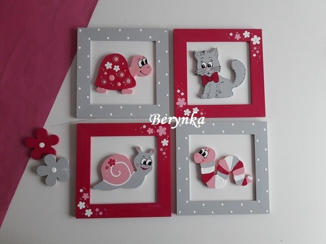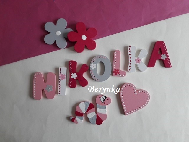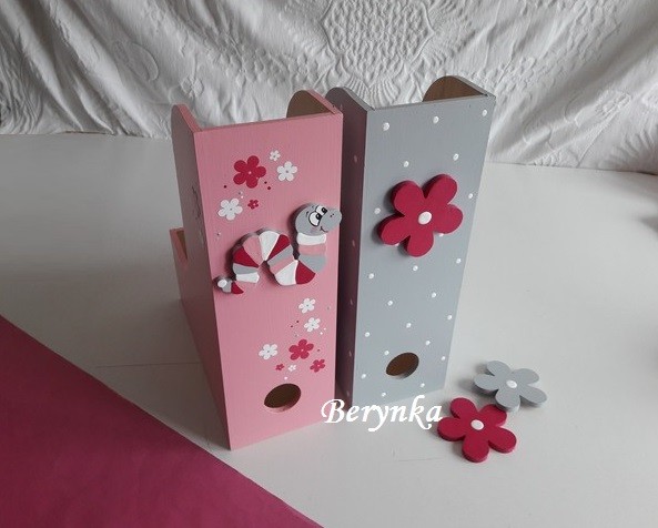 Dřevěné dekorace - růžová, šedá, malinová