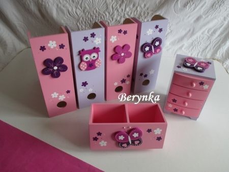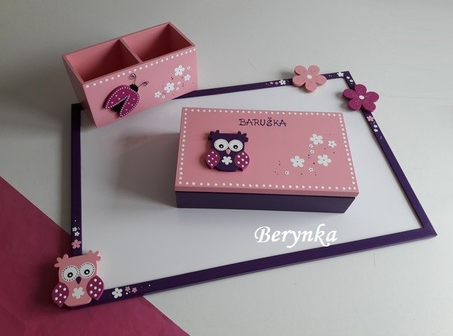 Dřevěné dekorace - růžovo-fialová s fuchsiovou