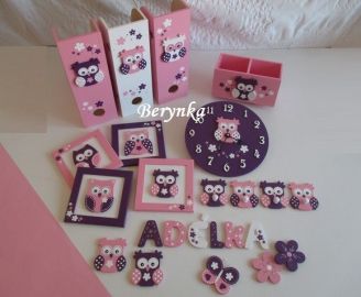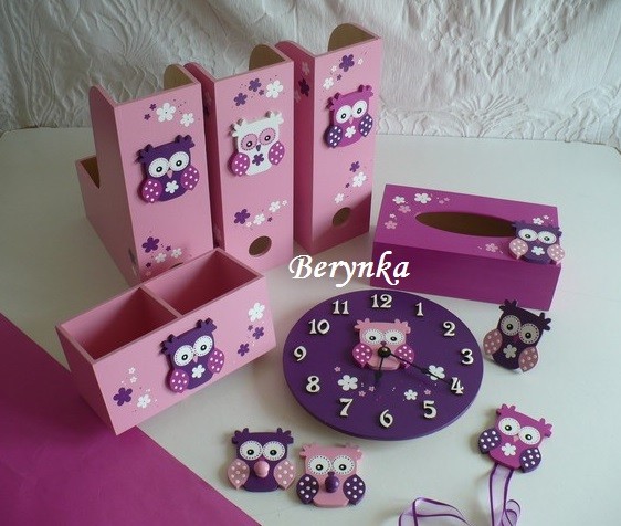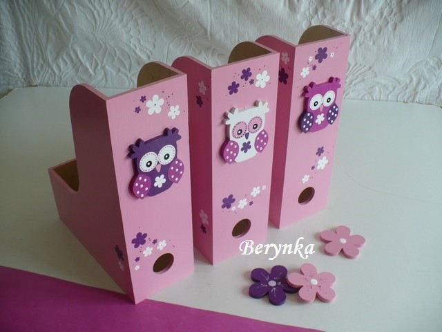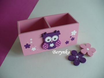 Dřevěné dekorace - růžovo-fialové se sovičkou