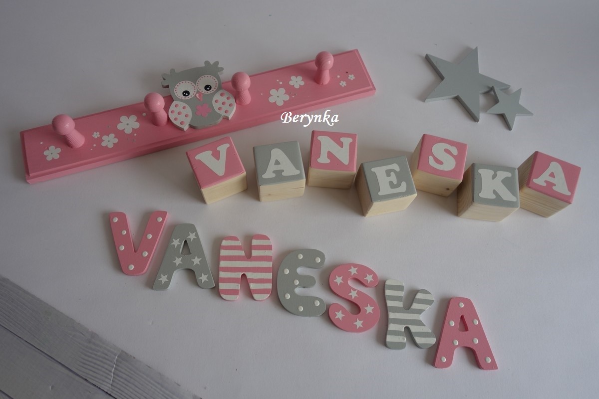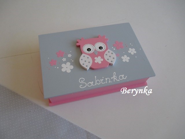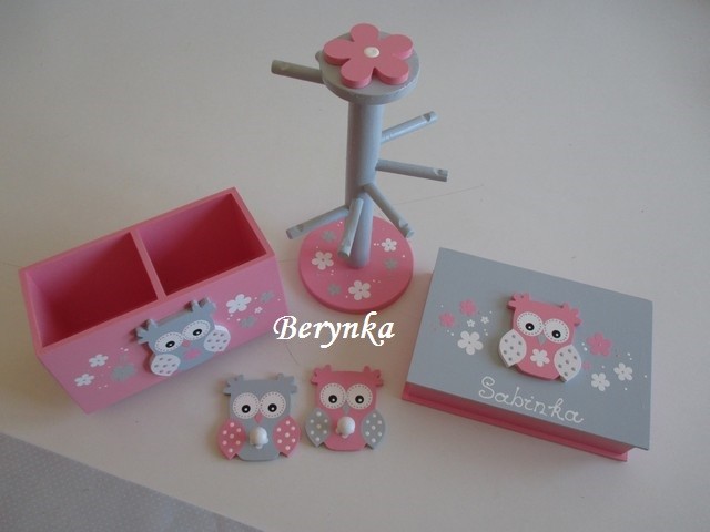 Dřevěné dekorace - růžovo-šedé se sovičkou