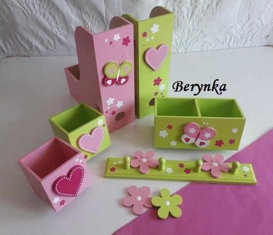 Dřevěné dekorace - růžovo-zelené s malinovou