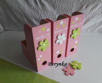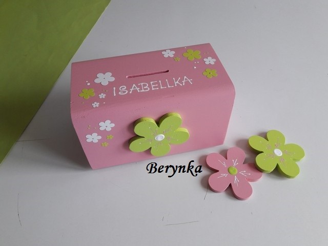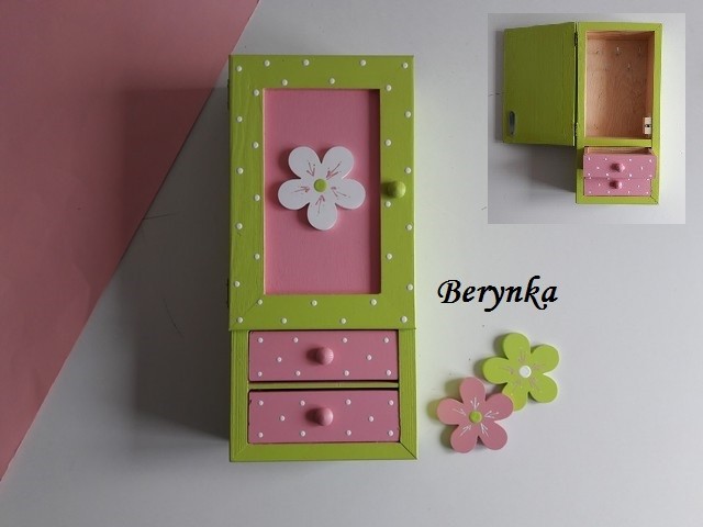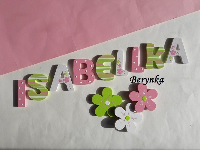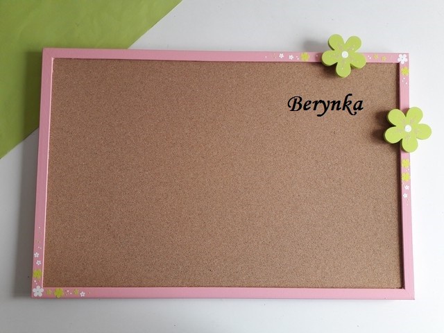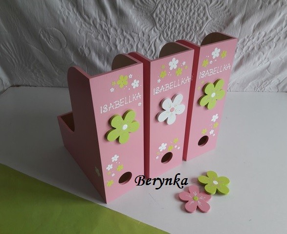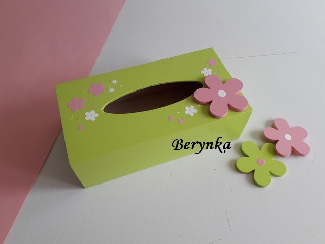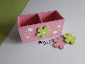 Dřevěné dekorace s kytičkou - růžová se zelenou a bílou