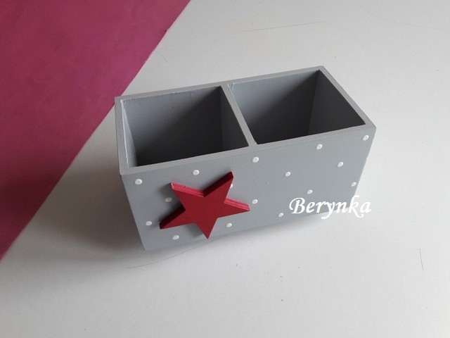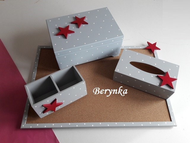 Dřevěné dekorace - šedé s malinovou hvězdičkou
