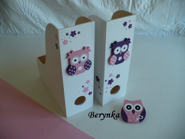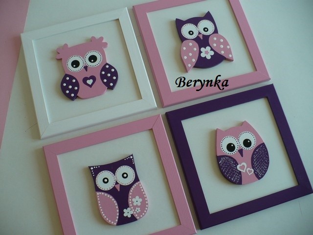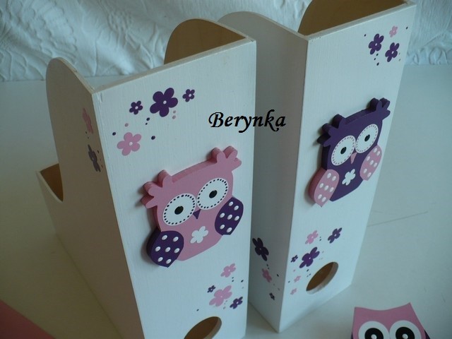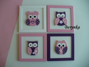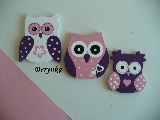 Dřevěné dekorace - tmavě fialová, bílá a růžová