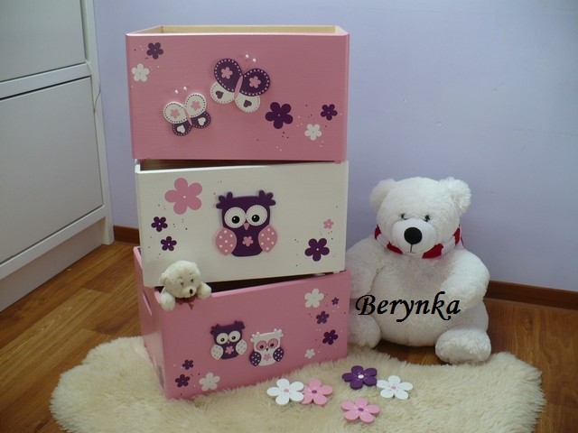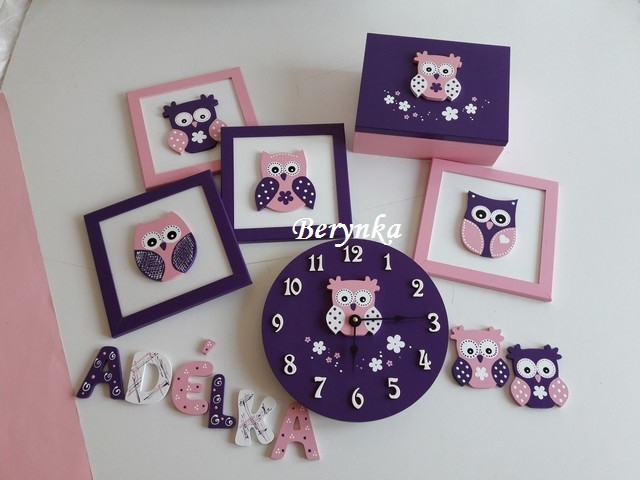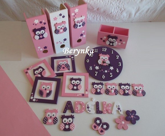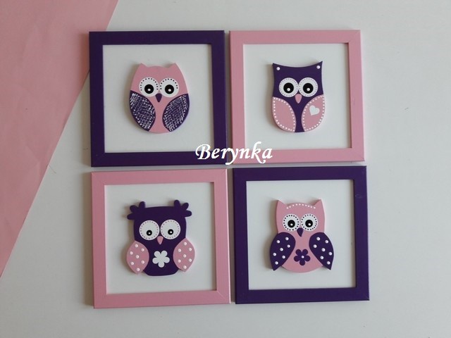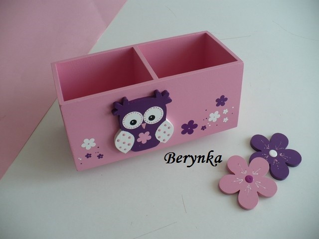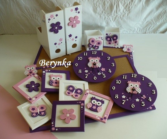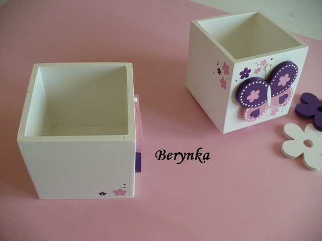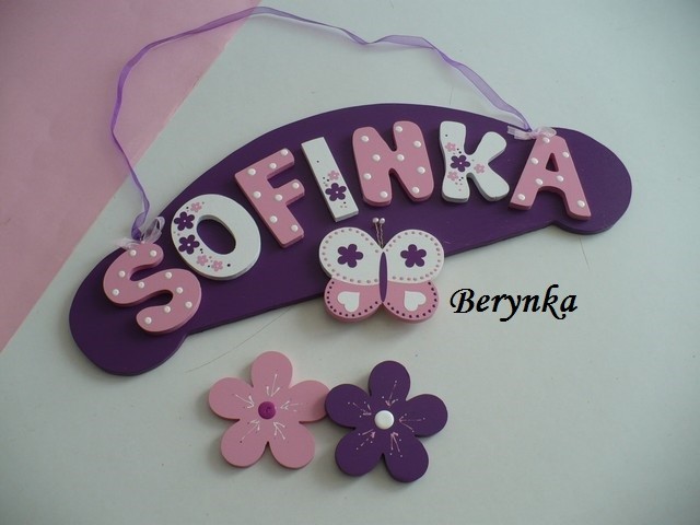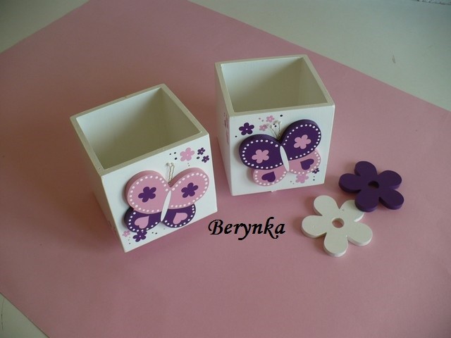 Dřevěné dekorace - tmavě fialová, růžová, bílá